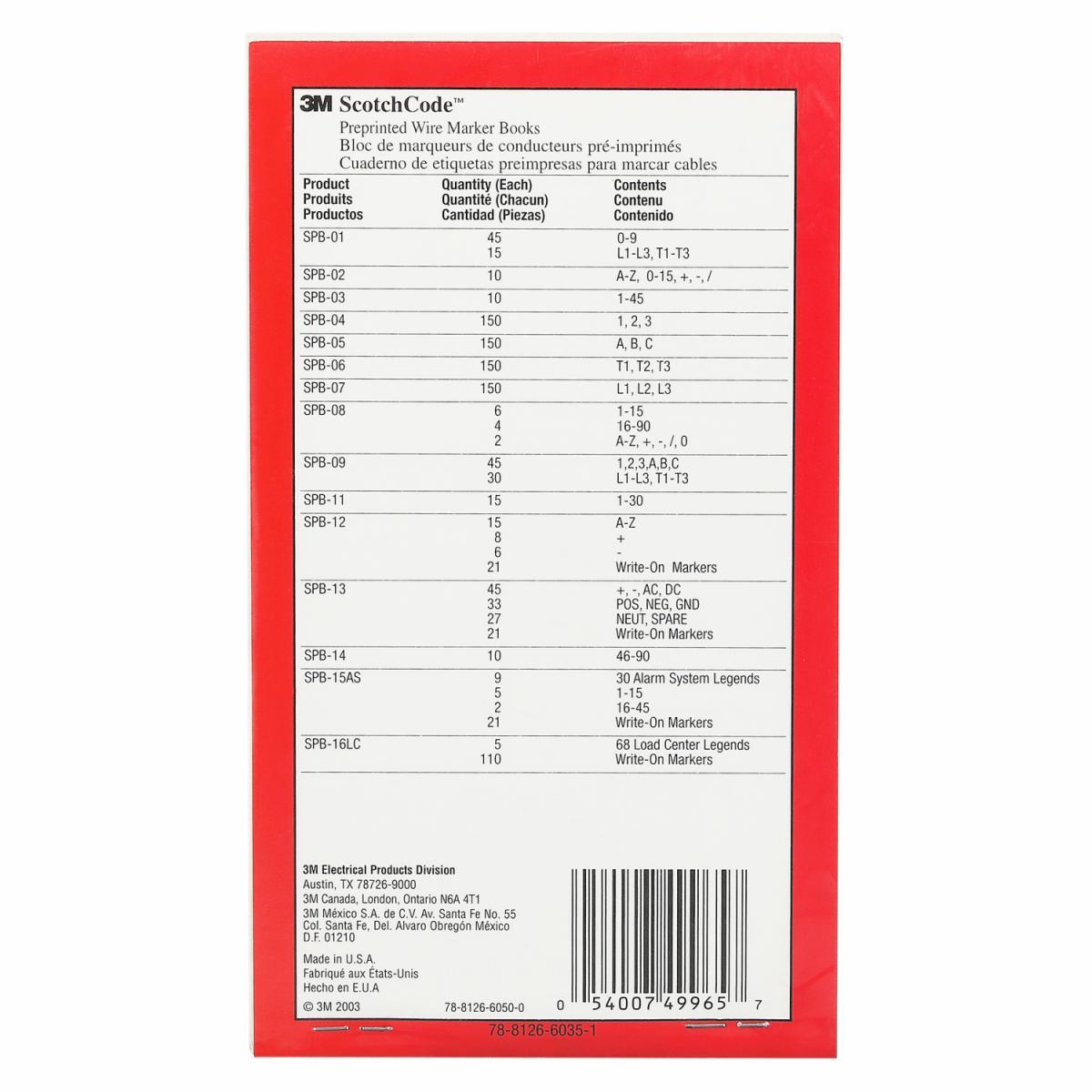 3M 7010319127 SPB Pre-Printed Wire Marker Book, Black on White, Vinyl