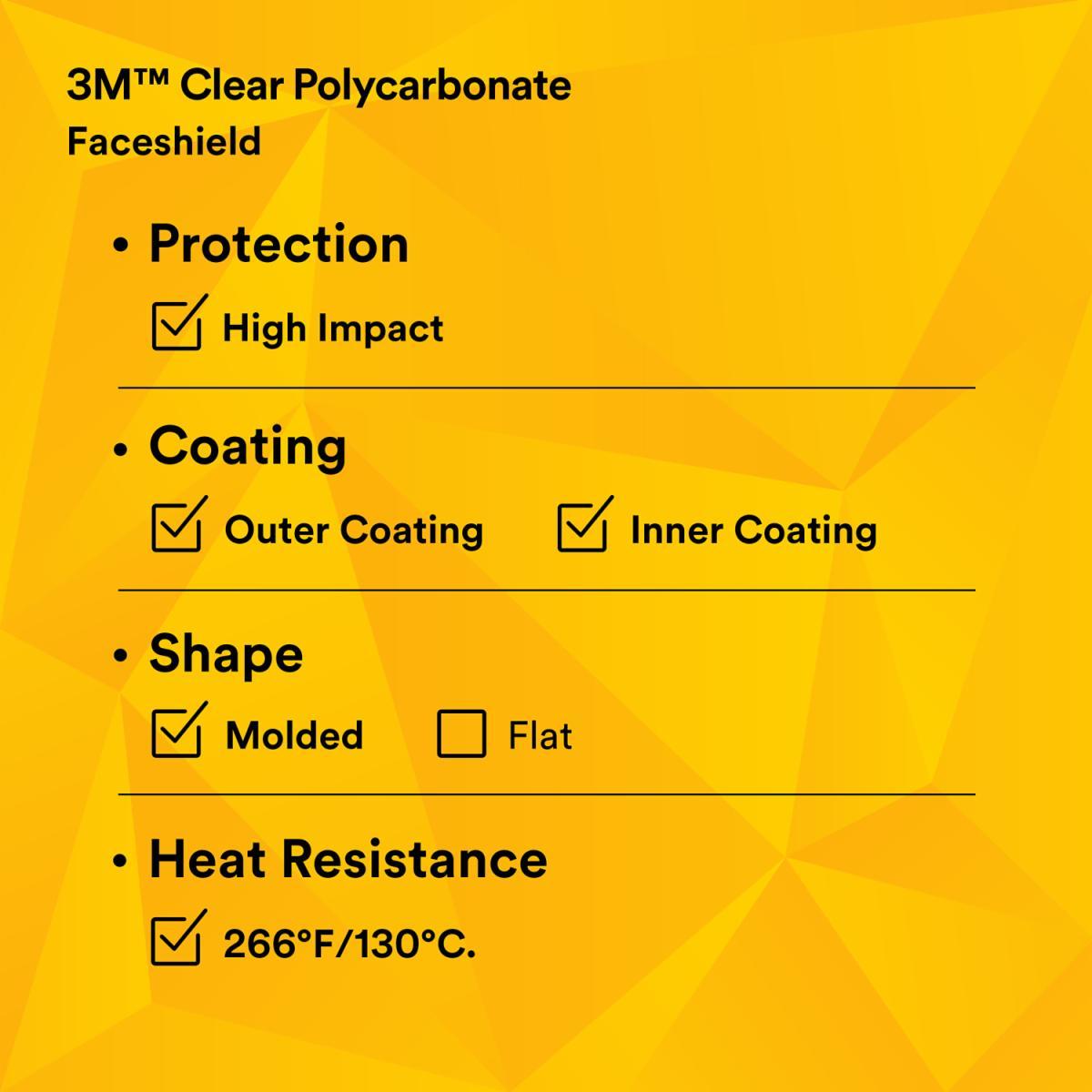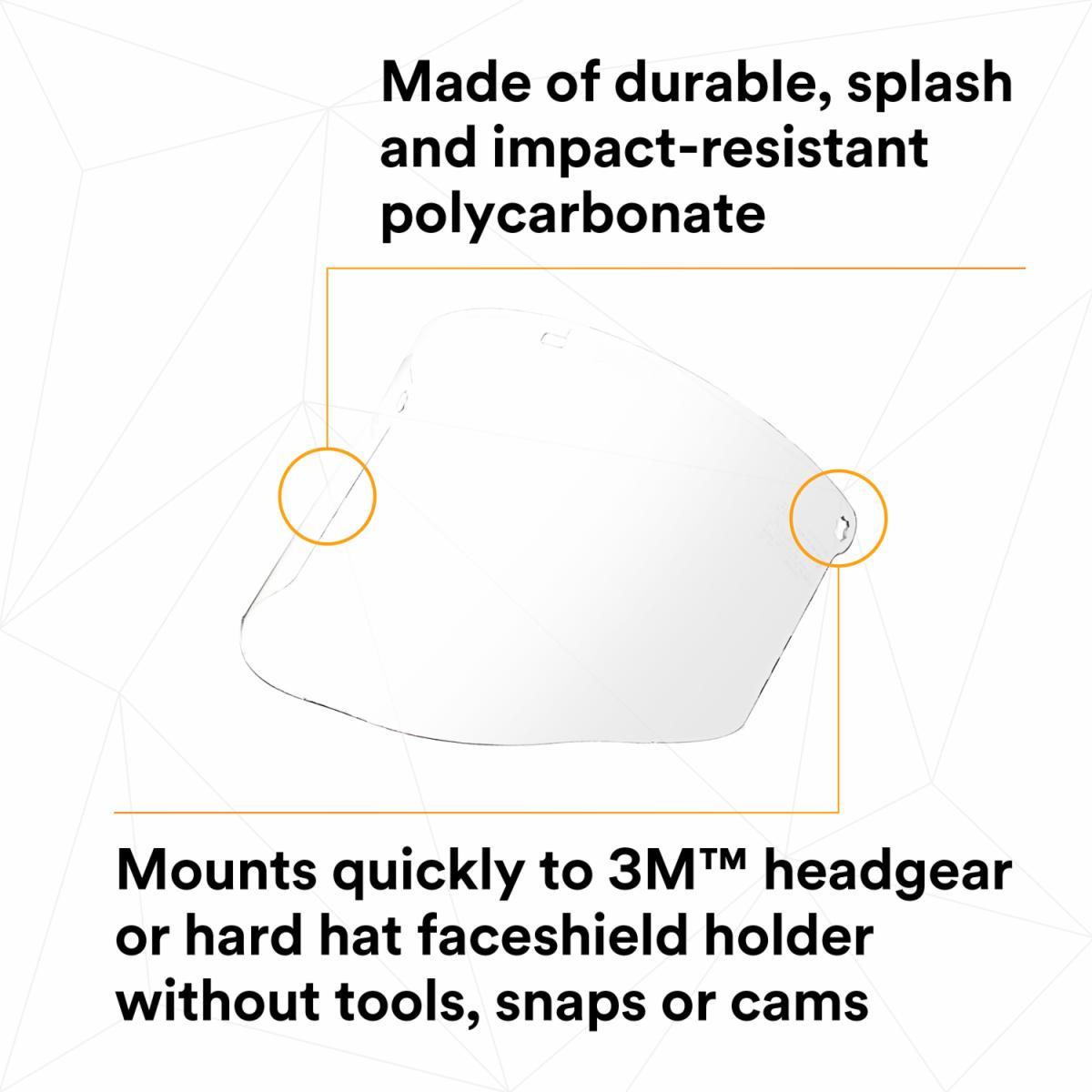3M 7000052753 82600-00000 Faceshield Visor, Clear, Polycarbonate, 9 in H 8 in W 0.08 in THK Visor, For Use With 3M Headgear Systems, ANSI Z87.1