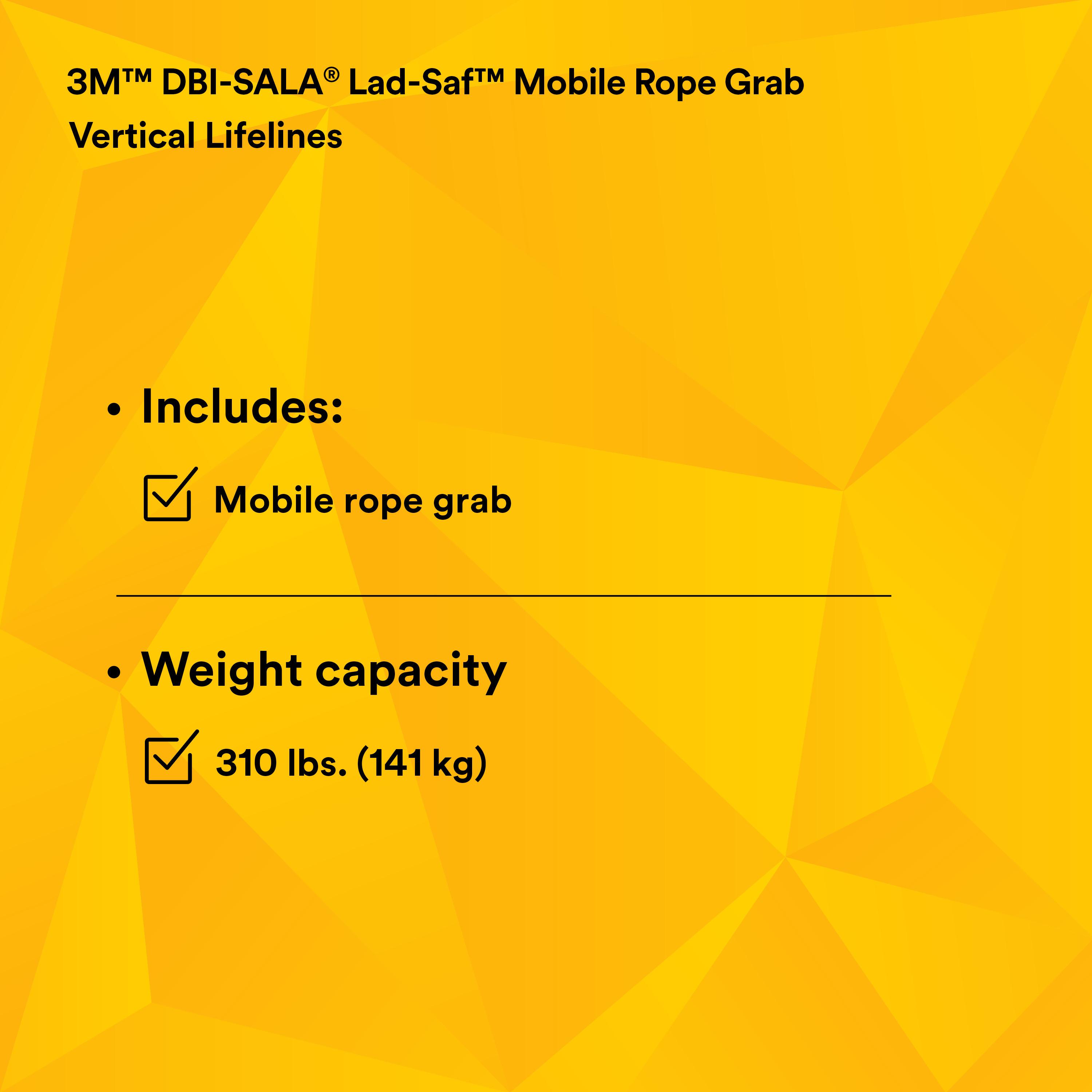 3M DBI-SALA Fall Protection 7100204313 Lad-Saf 1-User Temporary Rope Grab, 310 lb Weight Capacity