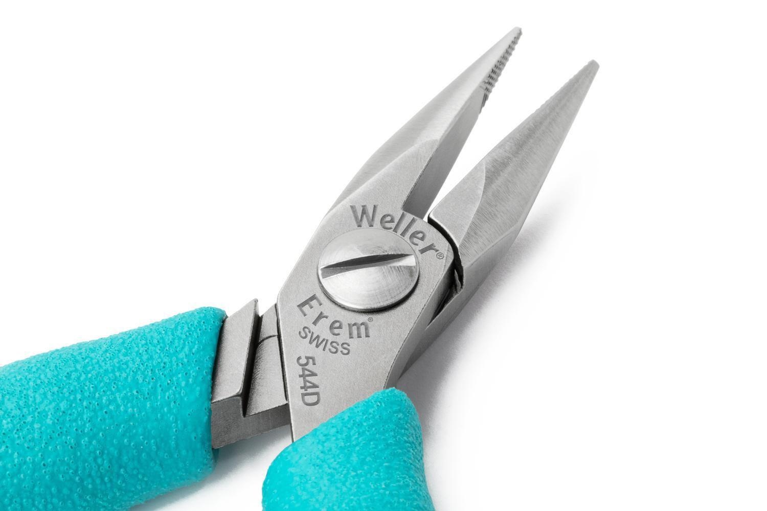 Weller 544D Chain Nose Plier, 0.906 in L x 0.059 in W, Serrated/Smooth Tool Steel Jaw, 0.059 in W Tip, 4-3/4 in OAL