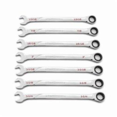 GEARWRENCH 86452 XL Series Extra Long Length Universal Combination Ratcheting Wrench Set, 7 Pieces, 13/16 to 1-1/4 in, Polished Chrome