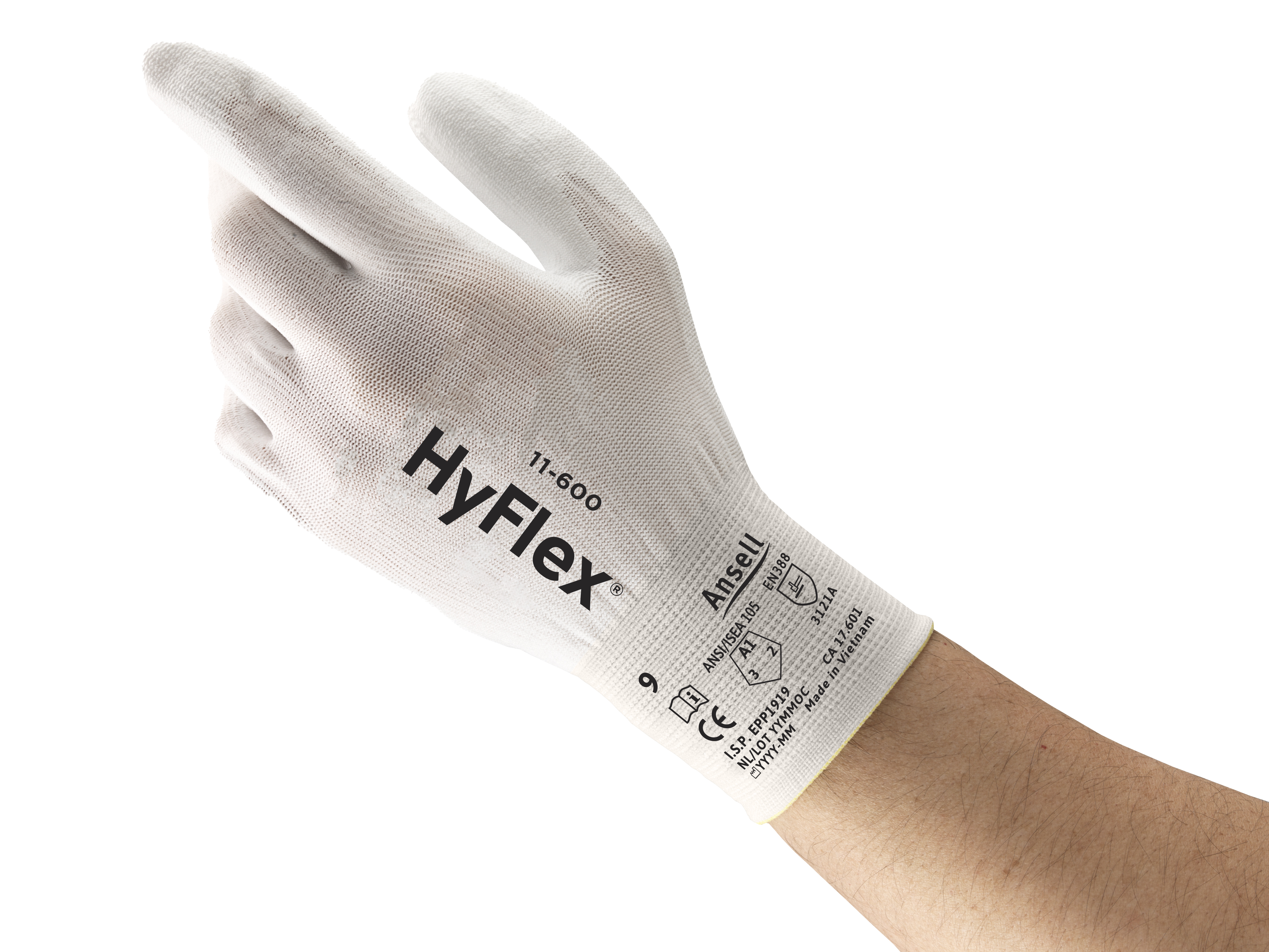 HyFlex 205654 11-600 Gloves, 10, Nylon/Polyurethane, Black/Grey, Knit Wrist Cuff, Resists: Cut/Abrasion