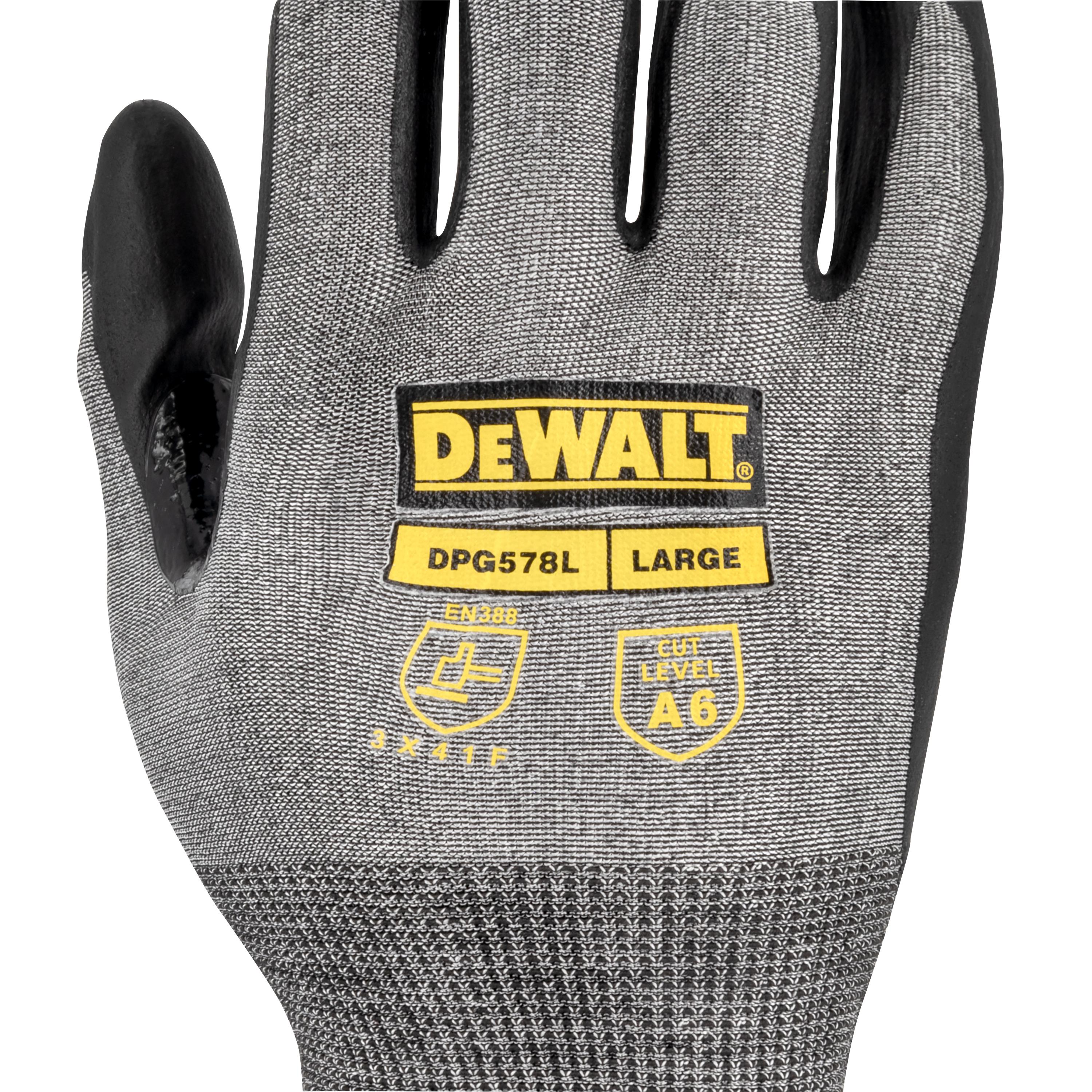 DeWALT DPG578XL DPG578 Cut-Resistant Glove, XL, 21 ga HPPE, Resists: Abrasion/Cut/Puncture, ANSI Cut-Resistance Level: A6, ANSI Puncture-Resistance Level: 3, Pair Hand