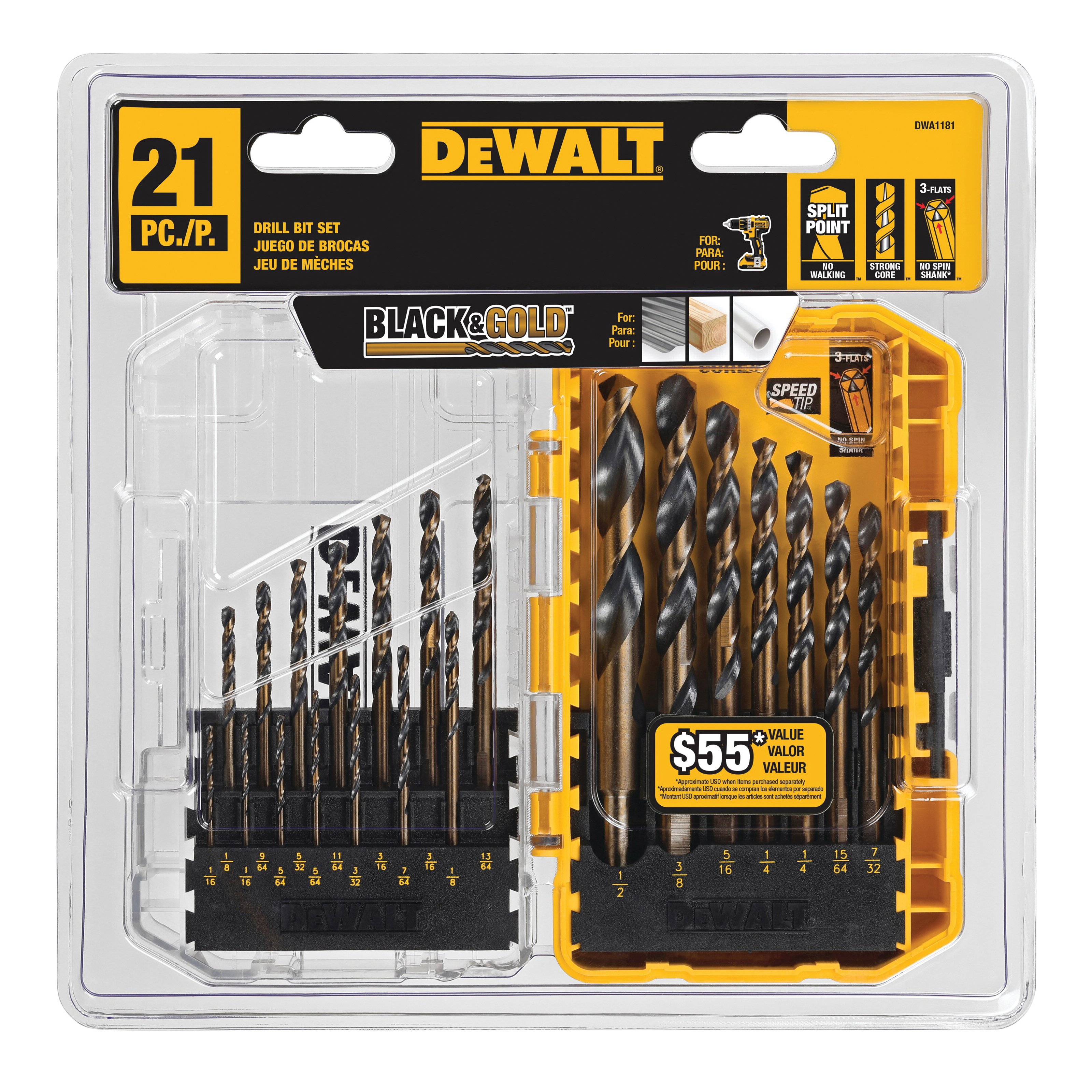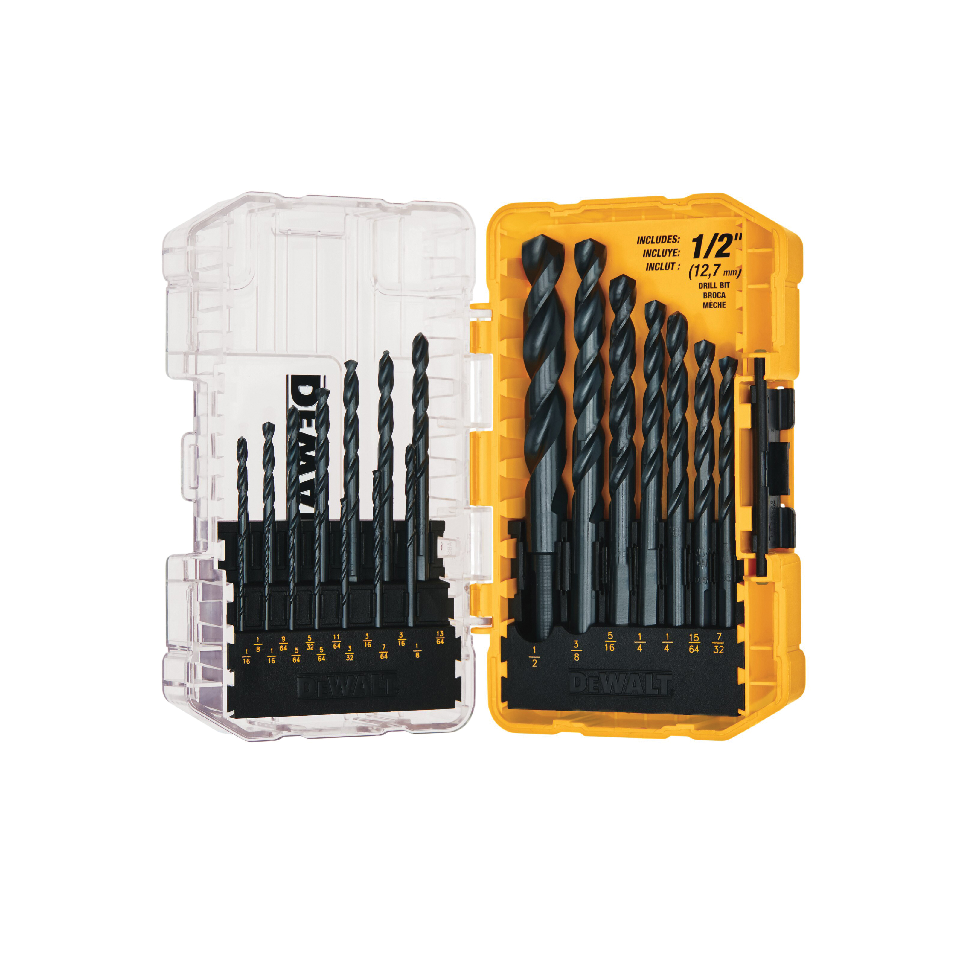 DeWALT DWA1181 Heavy Duty Drill Bits Set, 1/16 in Min Drill Bit, 1/2 in Max Drill Bit, 135 deg Drill Point Angle, 21 Pieces, High Speed Steel, Oxide Treated