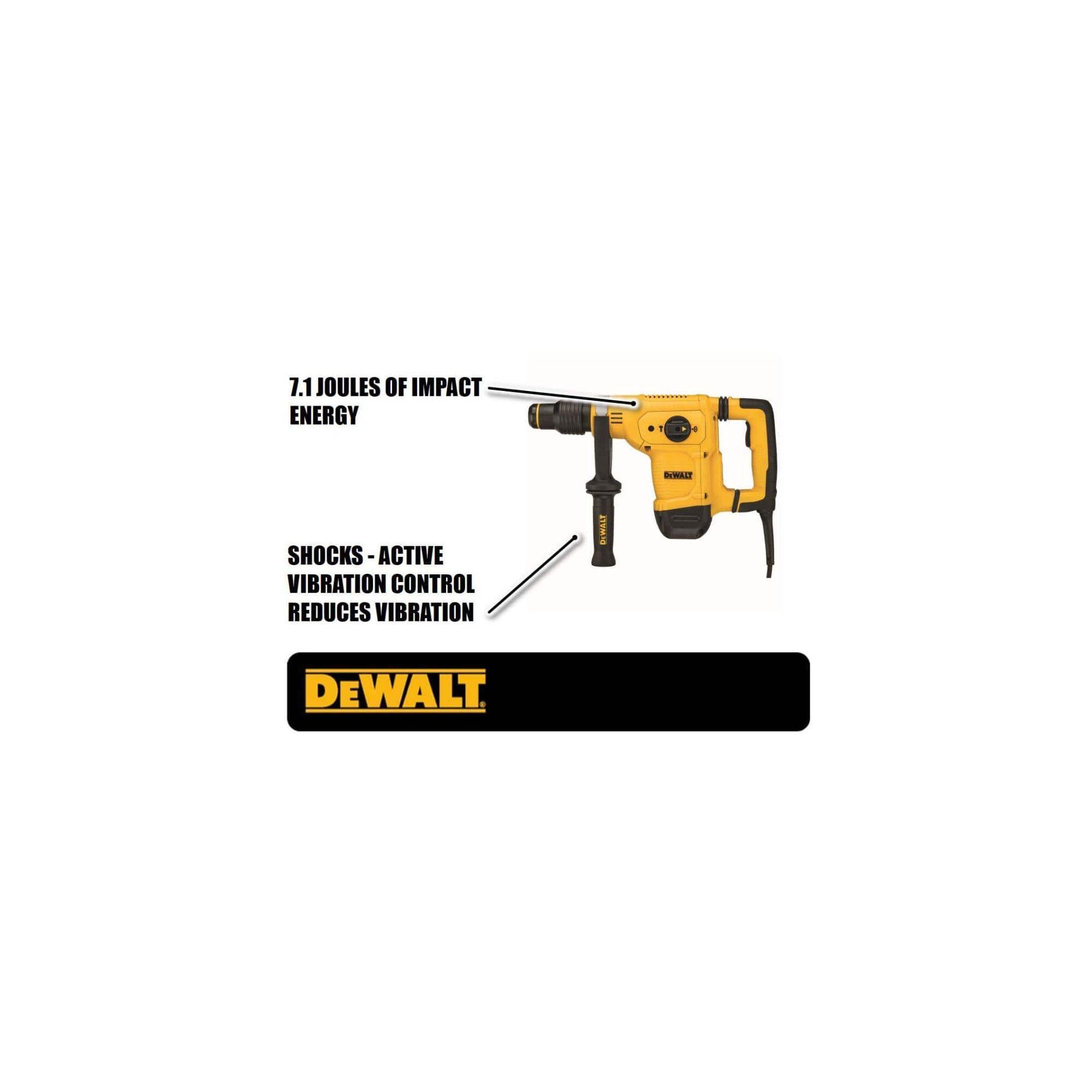 - Amperage Rating:10.5 ABlows per Minute:3150 bpmChuck Type:SDS Max®Color:Black/YellowDimensions:462 mm L x 108 mm W x 263 mm HHandle Type:Variable Position Side/D-RingHousing Material:PlasticImpact Energy:7.1 JSound Level:94 dB Pressure, 105 dB PowerTool/Kit:Bare ToolType:CordedVibration Level:8.5 m/sq-sVoltage Rating:120 V AC