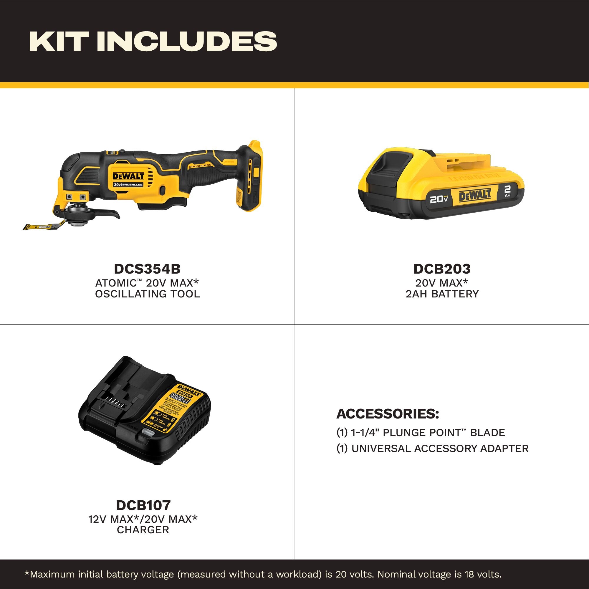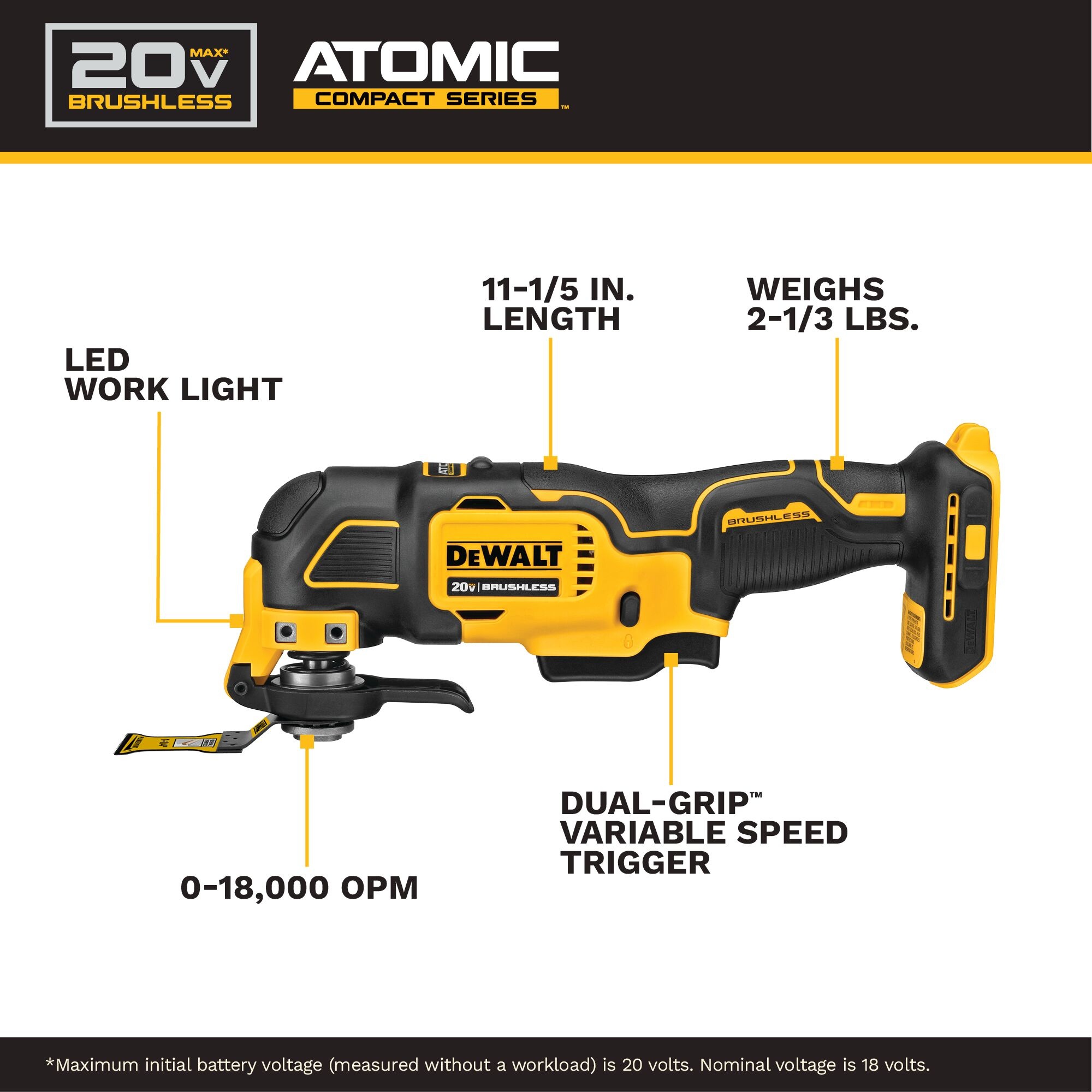 DeWALT DCS354D1 Brushless Cordless Oscillating Multi-Tool Kit, 0 to 18000 opm Speed, 20 V, Li-Ion Battery, 1 Batteries