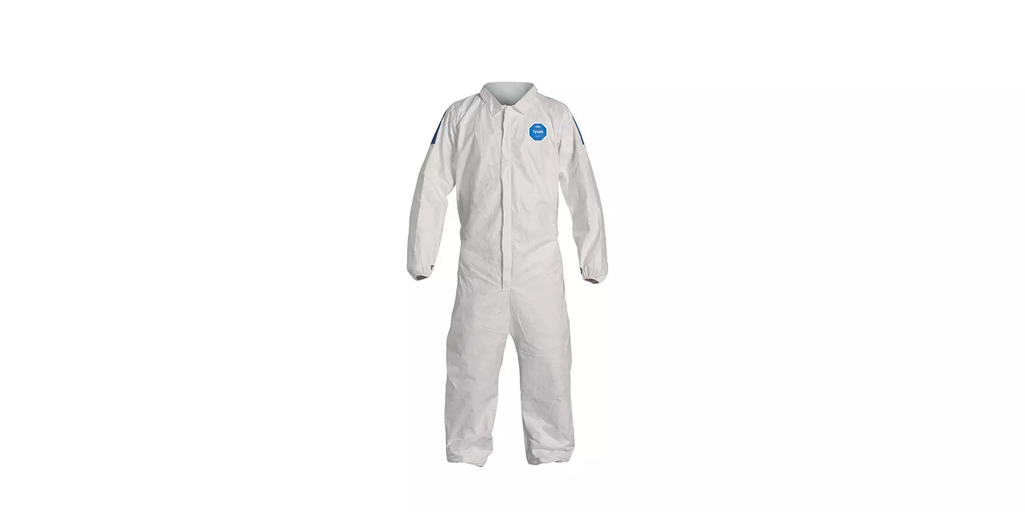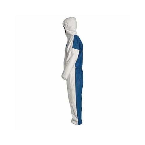 DuPont TD127SWB2X0025CM Disposable Coverall With Respirator Fit Hood, Elastic Wrist and Ankle, 2XL, Blue Back/White Front, 5.9 mil Tyvek 400 D, 45-1/4 to 48-3/4 in Chest, 30-1/2 in L Inseam