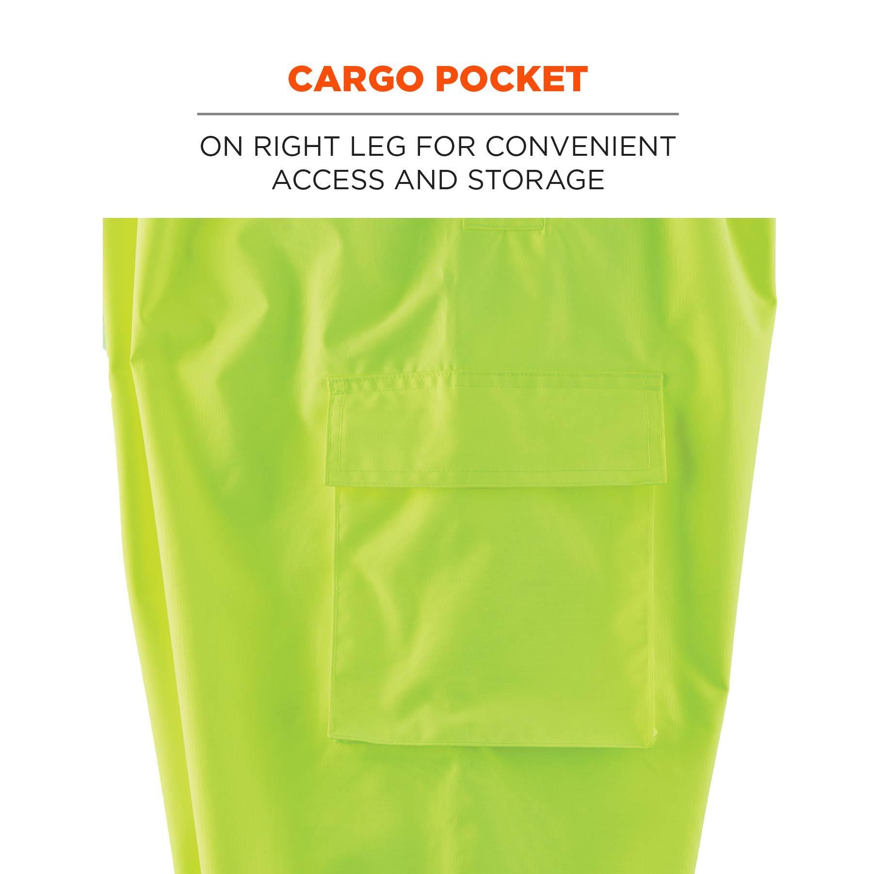 GloWear 25424 8915BK Supplemental Rain Pant, 34 to 38 in Waist, Hi-Viz Lime, 300D Oxford Polyester