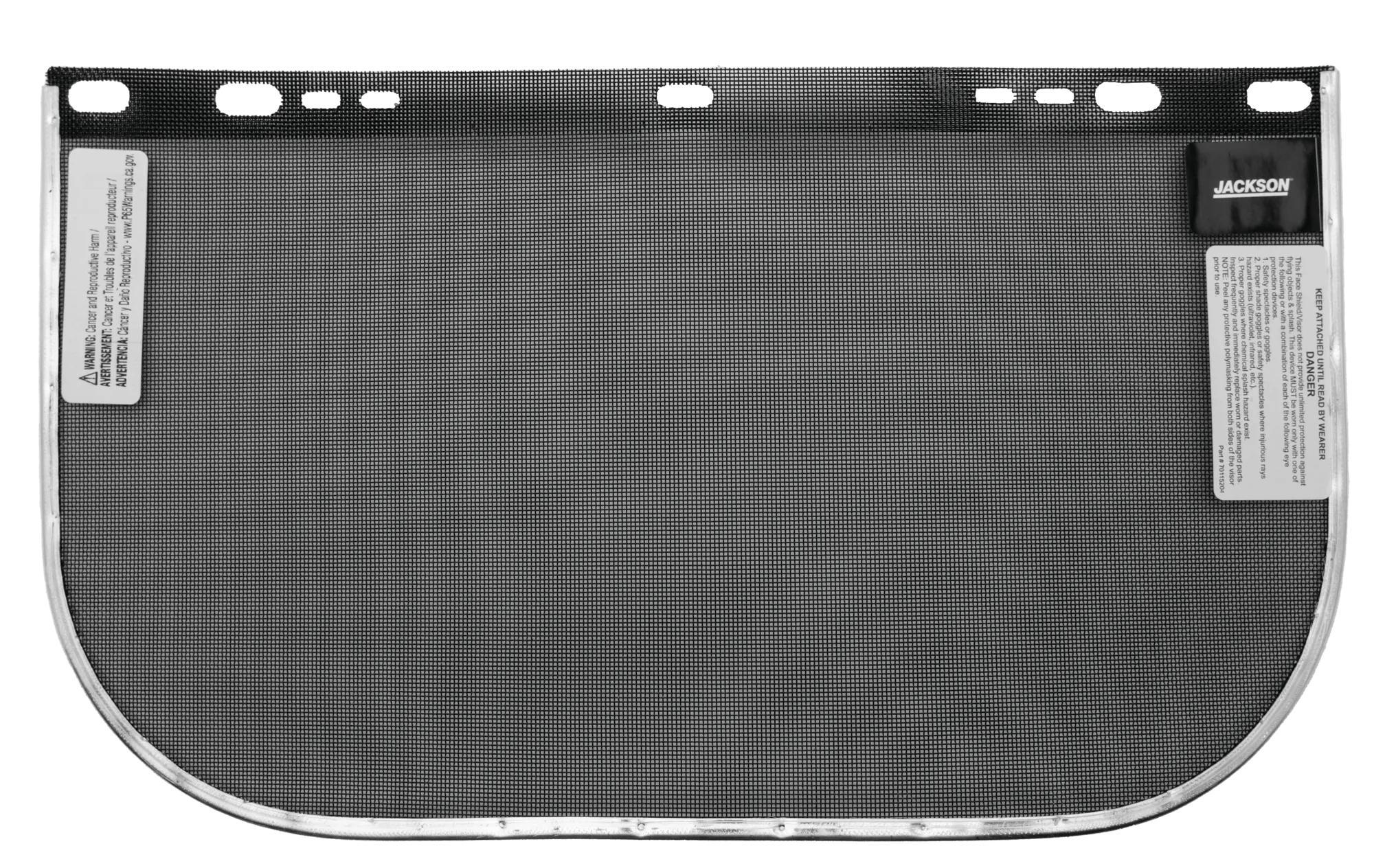 Jackson Safety 29081 F60 E Shape Bounded Faceshield Visor, Clear, Steel Mesh, 8 in H x 15-1/2 in W x 0.02 in THK Visor, For Use With 29077 Headgear, Specifications Met: ANSI Z87.1-2010, CSA Z94.3