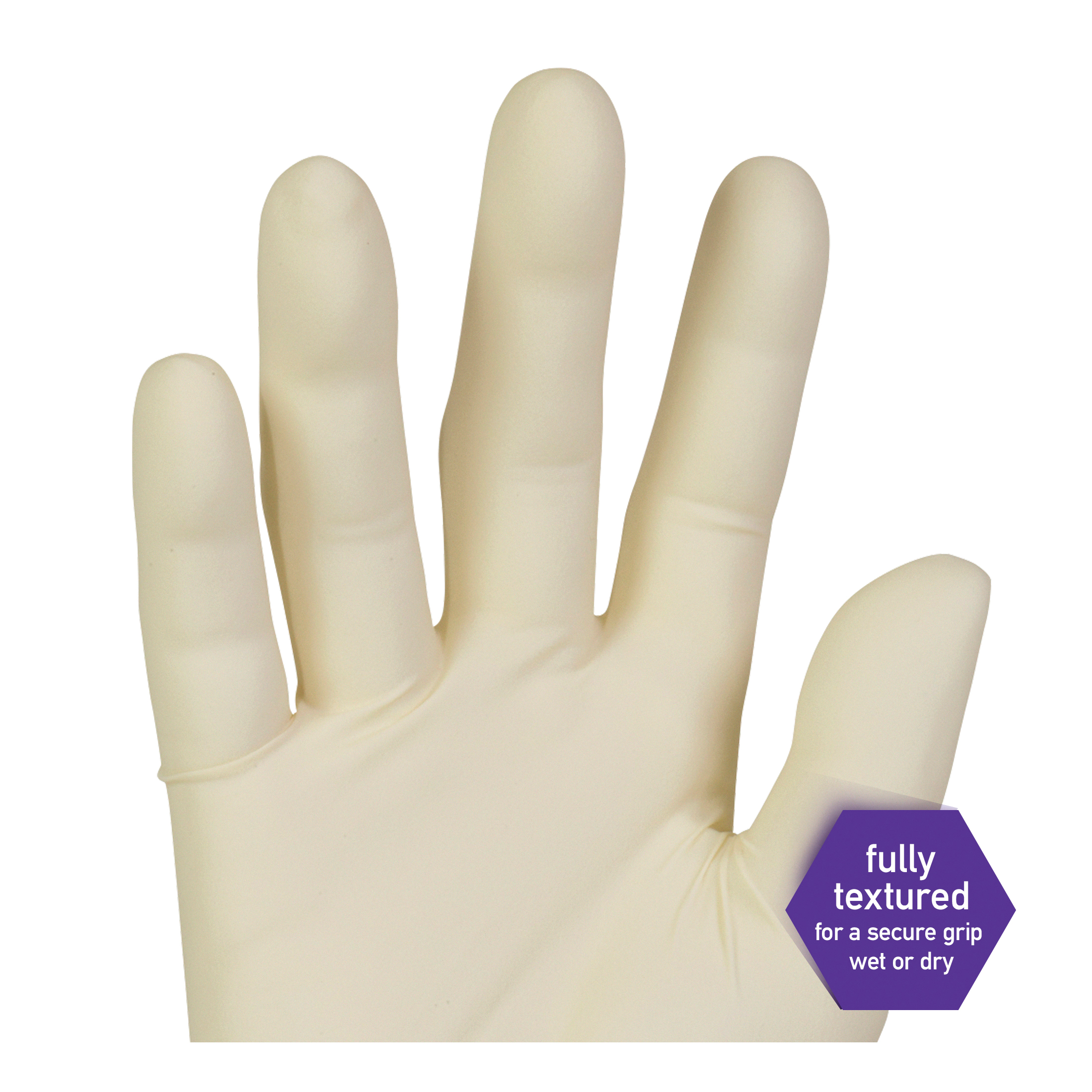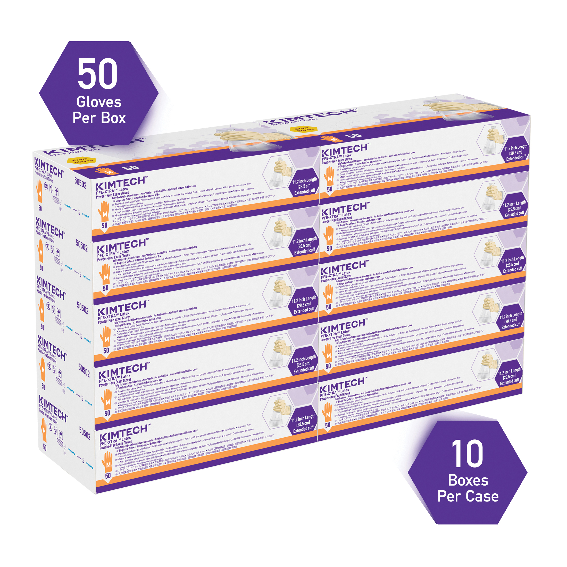 Kimtech* 50502 XTRA-PFE* Disposable Gloves, M, Natural Rubber Latex, Natural, 12 in L, Non-Powdered, Textured, 10.2 mil THK, Application Type: Exam/Medical Grade, Ambidextrous Hand