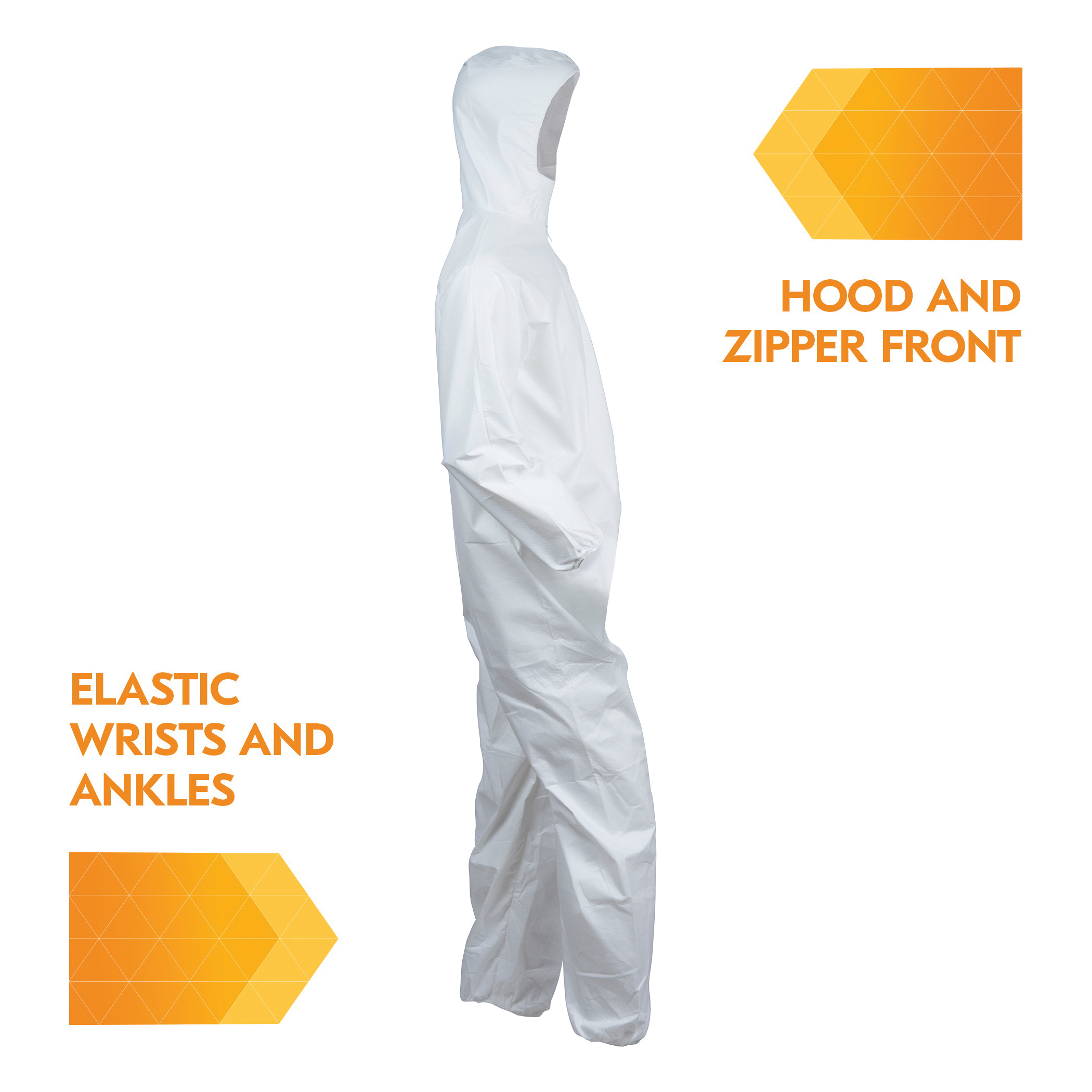 KleenGuard 44324 A40 Liquid Particle Protection Disposable Coverall, XL, White, Microporous Film Laminate, 26-1/2 in Chest, 38-1/2 in L Inseam