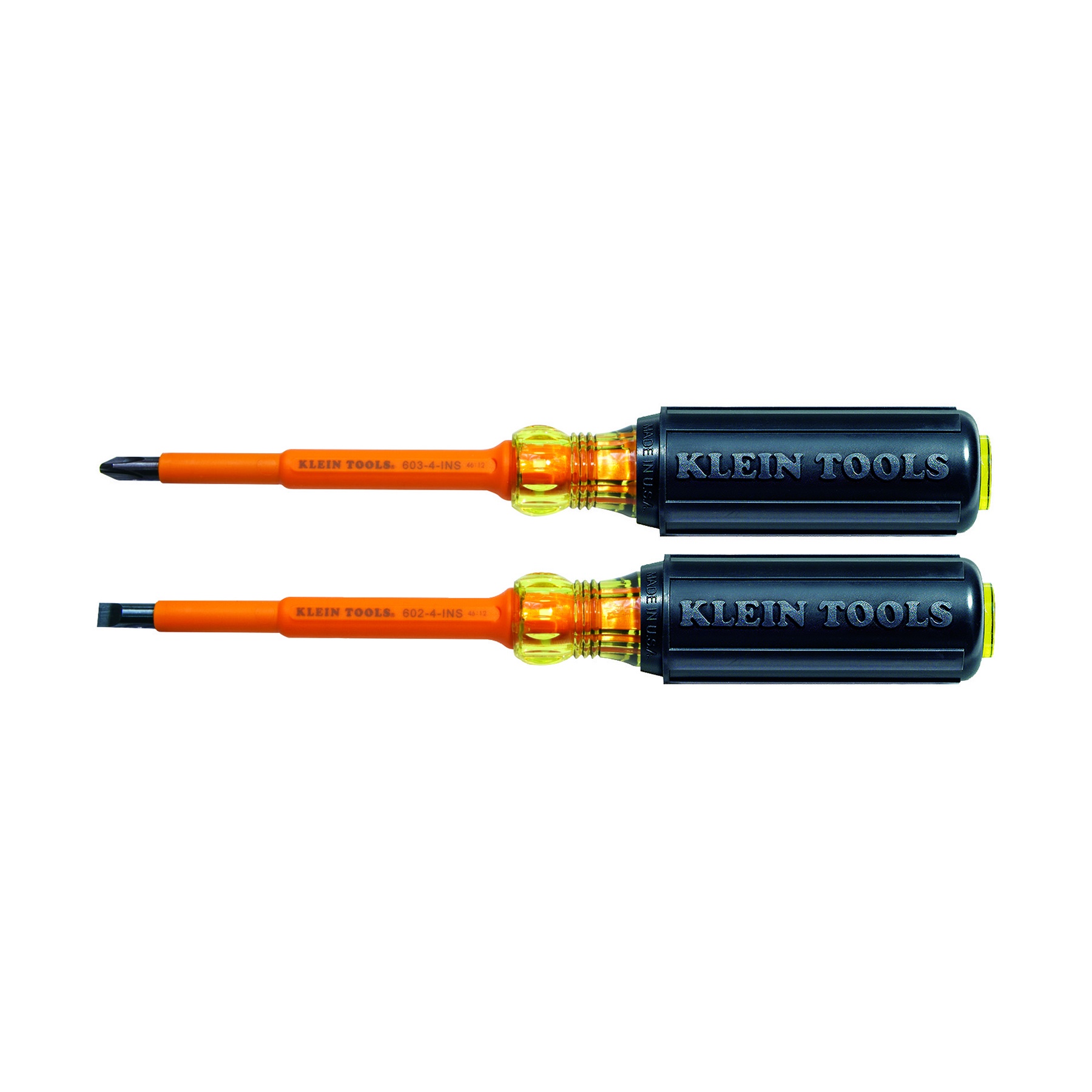 - Country of Origin:USManufacturer Name:Klein ToolsColor:BlackDimensions:7-1/4 in LFinish:Black OxideHandle Type:Cushion GripInsulated:YesMaterial:Steel/PlasticMeasurement System:ImperialNumber of Pieces:2Screwdriver Types Included:YesSpecifications:4 in L Shank