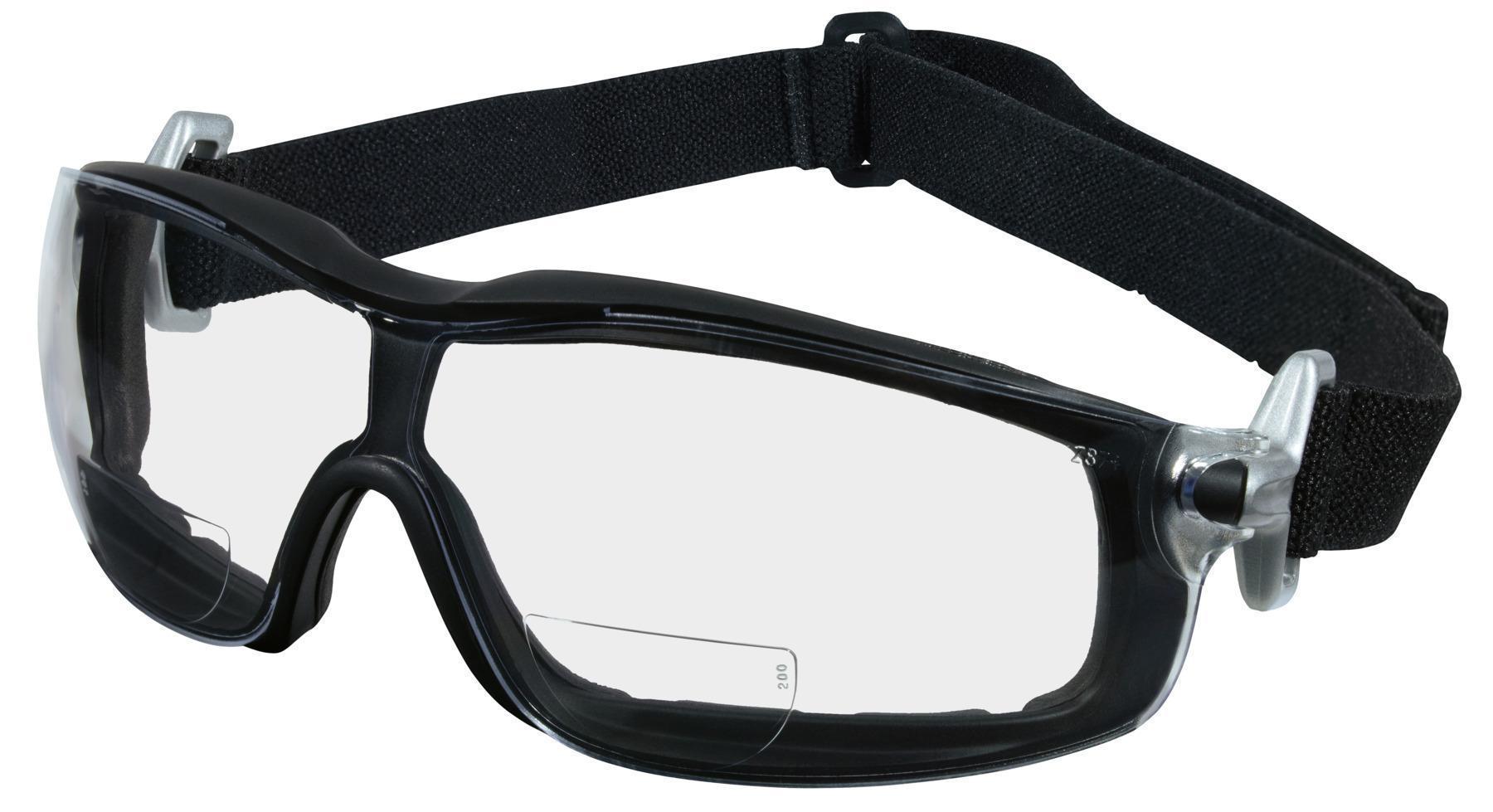 MCR Safety RTH20AF Rattler Magnifier Bi-Focal Single Lens Indirect Vent Safety Reading Goggles, +2 Diopter, Clear Lens, Black, Nylon Frame, Polycarbonate Lens, Yes % UV Protection, ANSI Z87.1+, ISO 12312-1