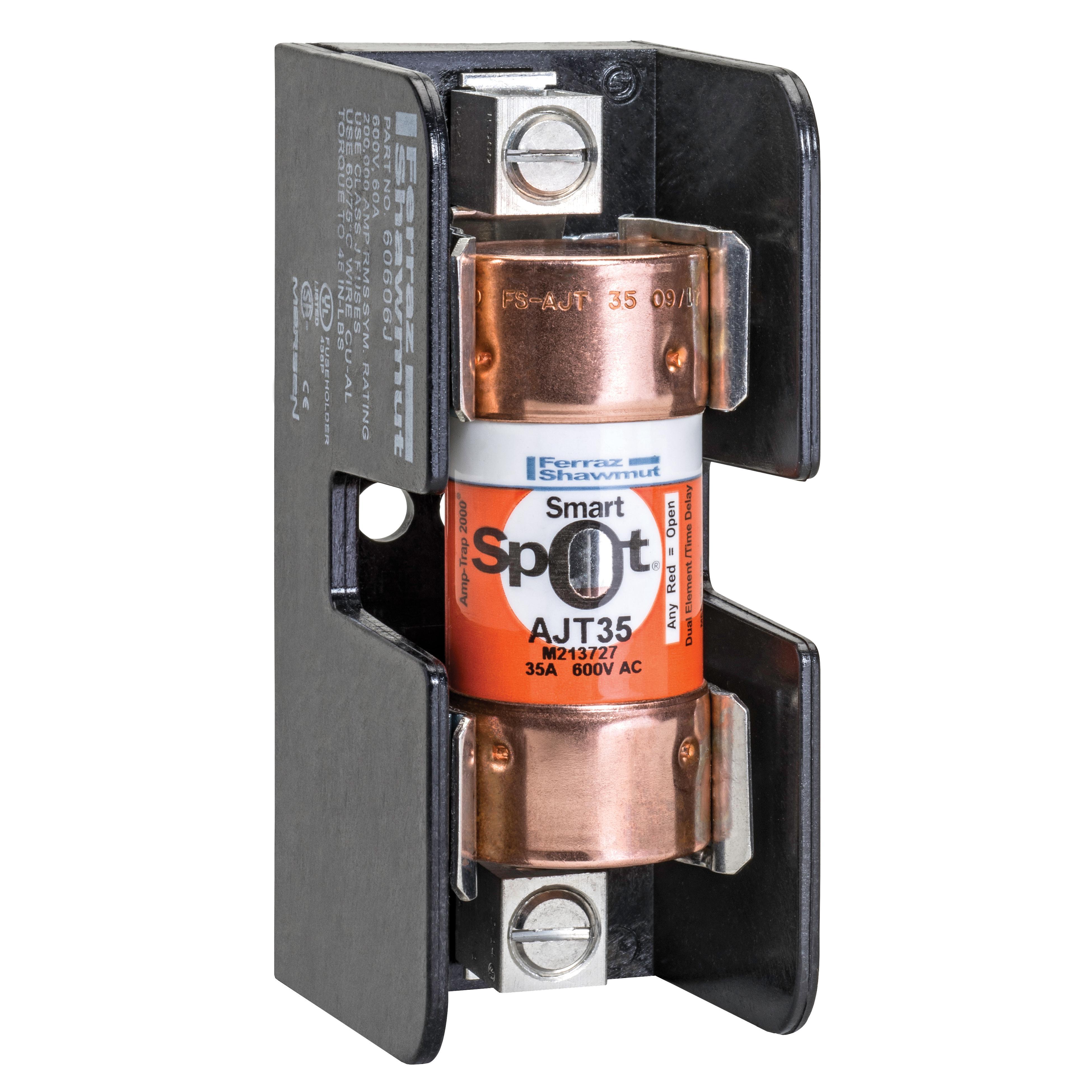 Mersen AMP-TRAP 2000 SmartSpot AJT45 Current Limiting Low Voltage North American Time Delay Power Fuse, 45 A, 600 V AC, 200 kA Interrupt, J Class, Cylindrical Body