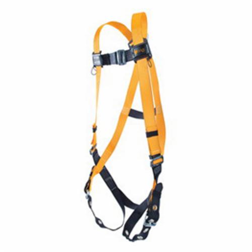 - Chest Strap Buckle:MatingColor:Black/OrangeHardware Material:SteelLeg Strap Buckle:TongueLoad Capacity:400 lbShoulder Strap Buckle:MatingSize:UniversalStrap Material:PolyesterStyle:Full BodyTensile Strength:5000 lb