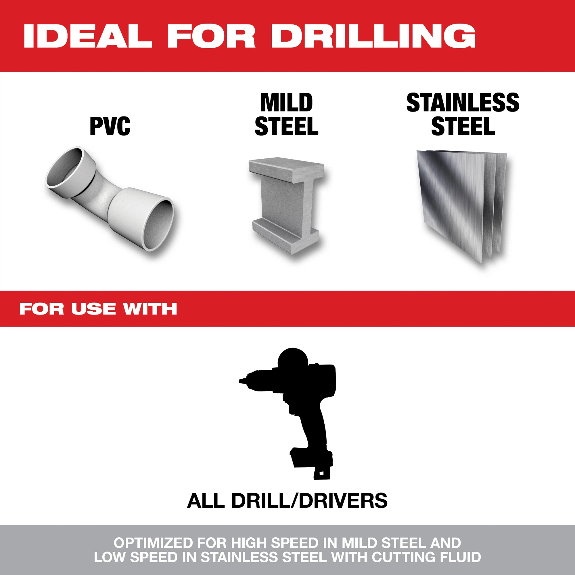 - Country of Origin:USManufacturer Name:Milwaukee ToolApplicable Materials:Mild Steel and Stainless SteelCutting Depth:1/2 inDrill Diameter Measurement System:ImperialFlute Length:2.11 inFlute Type:LongLetter/Wire Size:#1Material:Bi-MetalMaximum Hole Diameter:1/2 inMinimum Hole Diameter:1/8 inNumber of Flutes:2Overall Length:2.98 inShank Size:3/8 inShank Type:3-Flat Secure-Grip™Type:Single Ended