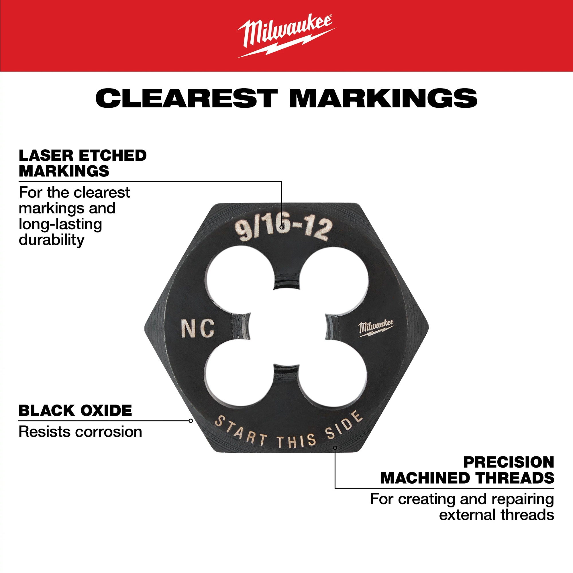 Milwaukee 49-57-5393 Hex Threading Dies, 1/2-14 Thread NPT Thread, 2 in OD Die, High Carbon Steel