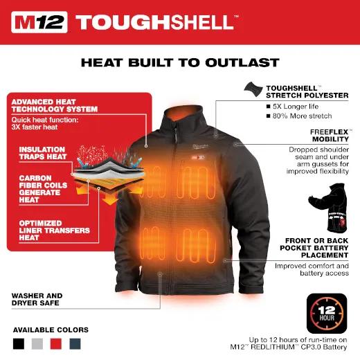 Milwaukee 204B-212X Heat Technology Safety Wear, Black, Cotton/Polyester, Resists: Wind/Water/Weather