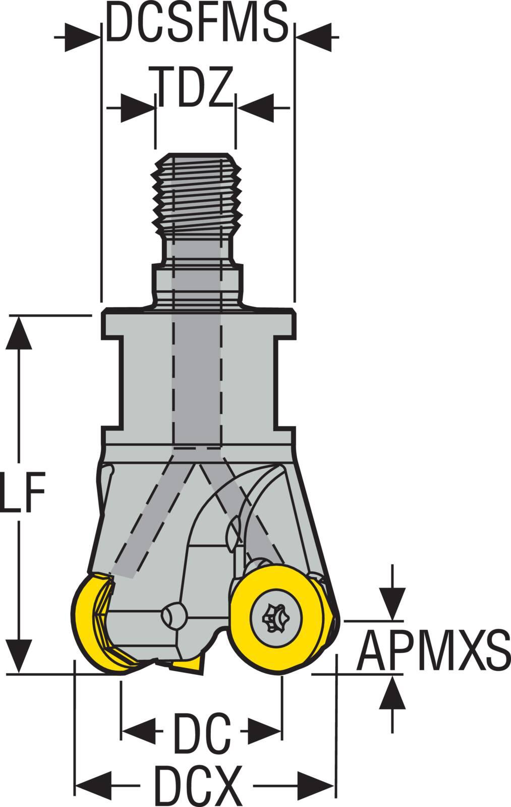 Seco 02495678 R217.29 Indexable Copy End Mill, M10 Modular Connection Thread