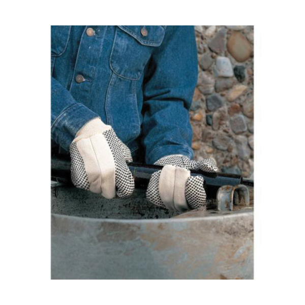 MCR Safety 8800 Medium Weight General Purpose Gloves, Work, Clute Cut/Straight Thumb Style, L, 7 ga Cotton Canvas, Natural, Knit Wrist Cuff, Dotted PVC Coating, Resists: Abrasion, Unlined Lining