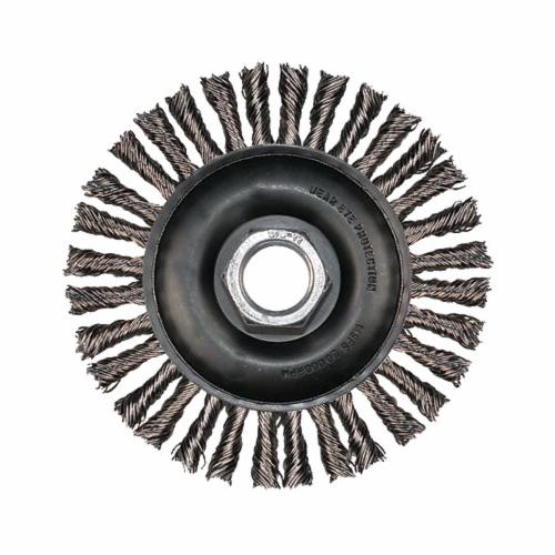 PFERD Wheel Brush, 6 in Brush Dia, 3/16 in Face Width, 5/8-11 Arbor Hole Size, Stringer Bead Knot Filament/Wire Type, 0.02 in Filament/Wire Diameter, Stainless Steel Fill, 1-1/8 in Trim Length, 12500 rpm Maximum, Threaded Arbor Attachment