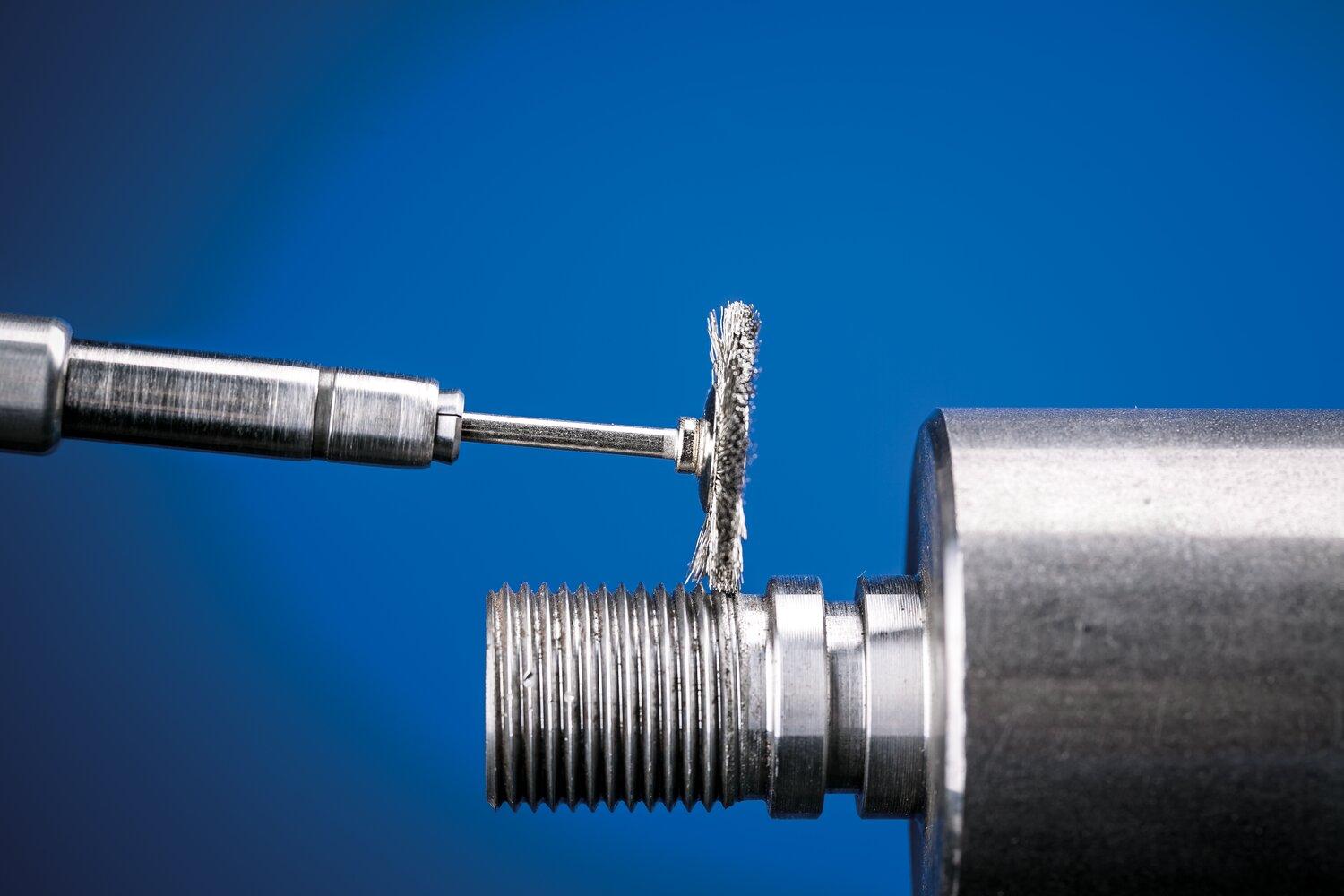 - Attachment Type:StemBrush Diameter:1 inFace Width:1/16 inFilament/Wire Diameter:0.005 inFilament/Wire Type:CrimpedFill Material:Carbon SteelMaximum Speed:25000 rpmShank Diameter:1/8 inTrim Length:1/4 inType:Miniature