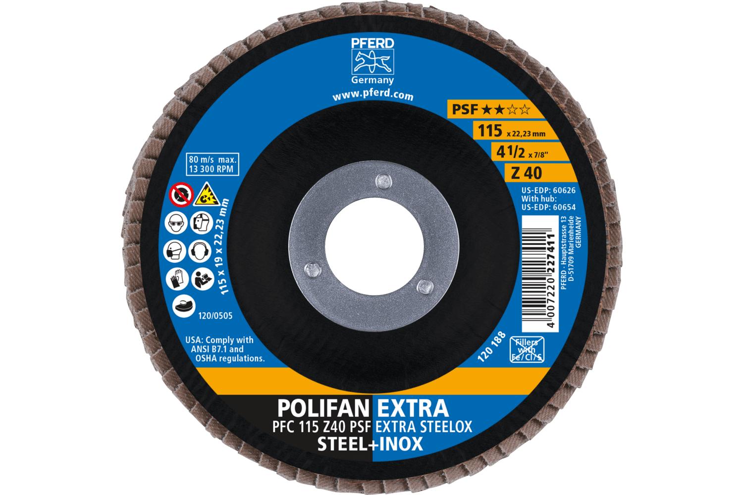 - The POLIFAN® PSF ZIRKON-EXTRA range of flap discs features a special flap arrangement to provide flexibility and a cushioned grinding effect