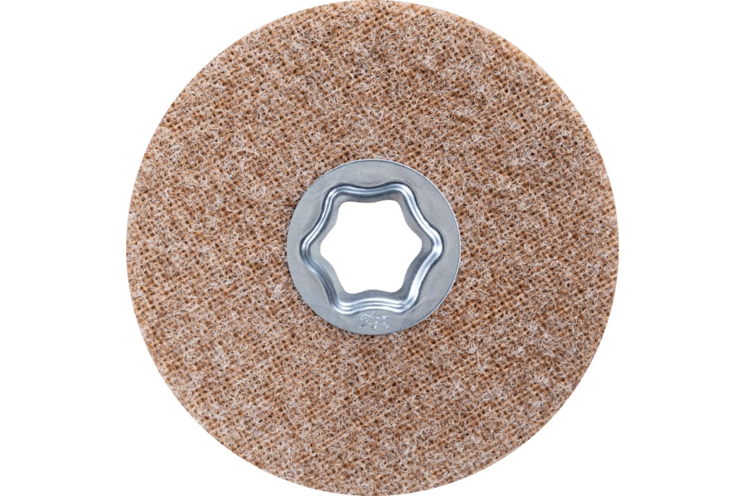 PFERD COMBICLICK® Non-Woven Abrasive Quick-Change Disc, Hard Type, 4-1/2 in Diameter Disc, Aluminum Oxide Abrasive, Coarse Grade, 10500 rpm Maximum, Brown/Red