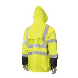 Radians RW07J-3ZGV-5X Rain Jacket, 5XL, Black/Hi-Viz Yellow/Lime, 0.35 mm Polyester/PVC, Resists: Water, ANSI/ISEA 107-2015 Class 3, SE D6413, Detachable Hood