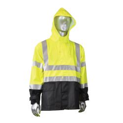 Radians RW07J-3ZGV-L Rain Jacket, L, Black/Hi-Viz Yellow/Lime, 0.35 mm Polyester/PVC, Resists: Water, ANSI/ISEA 107-2015 Class 3, SE D6413, Detachable Hood