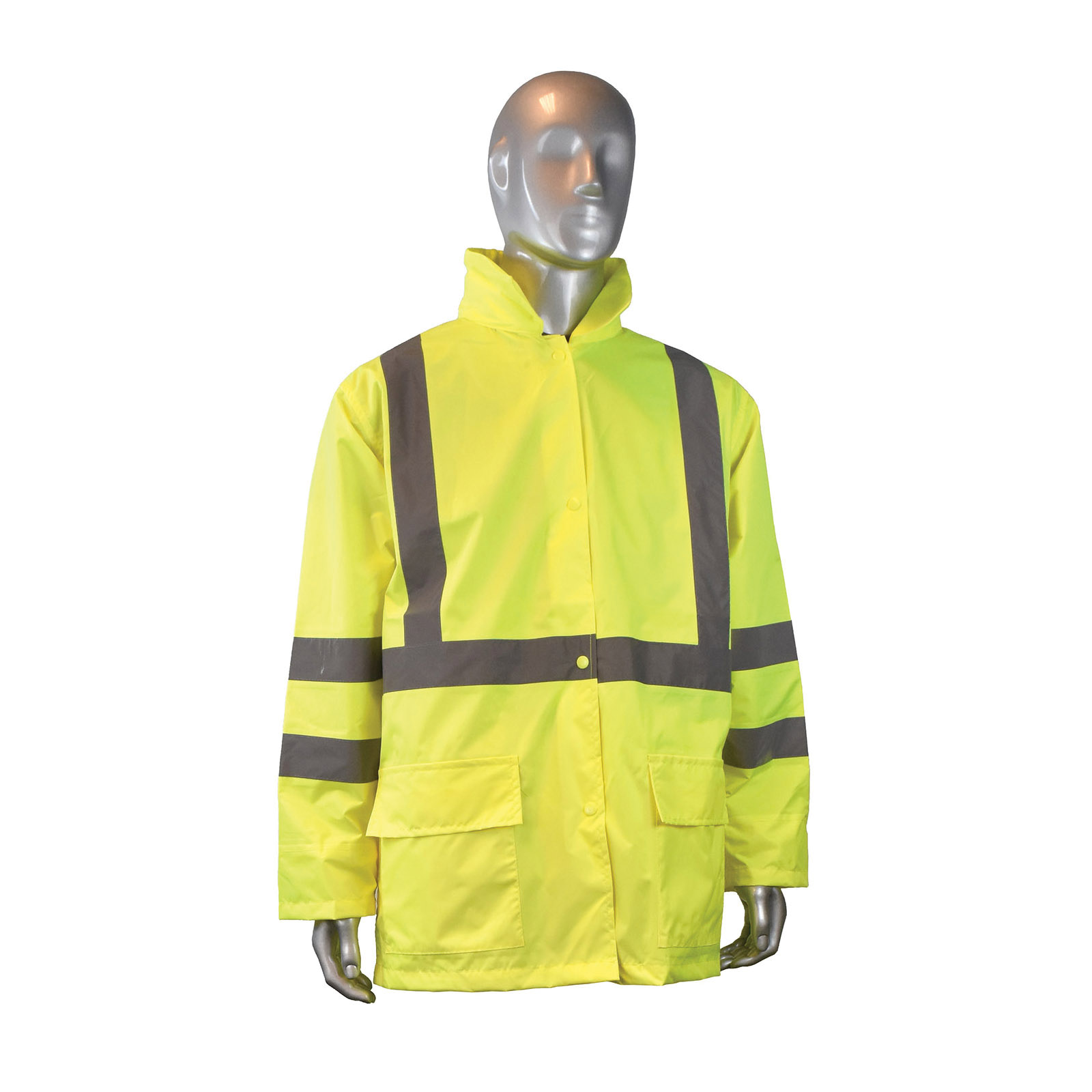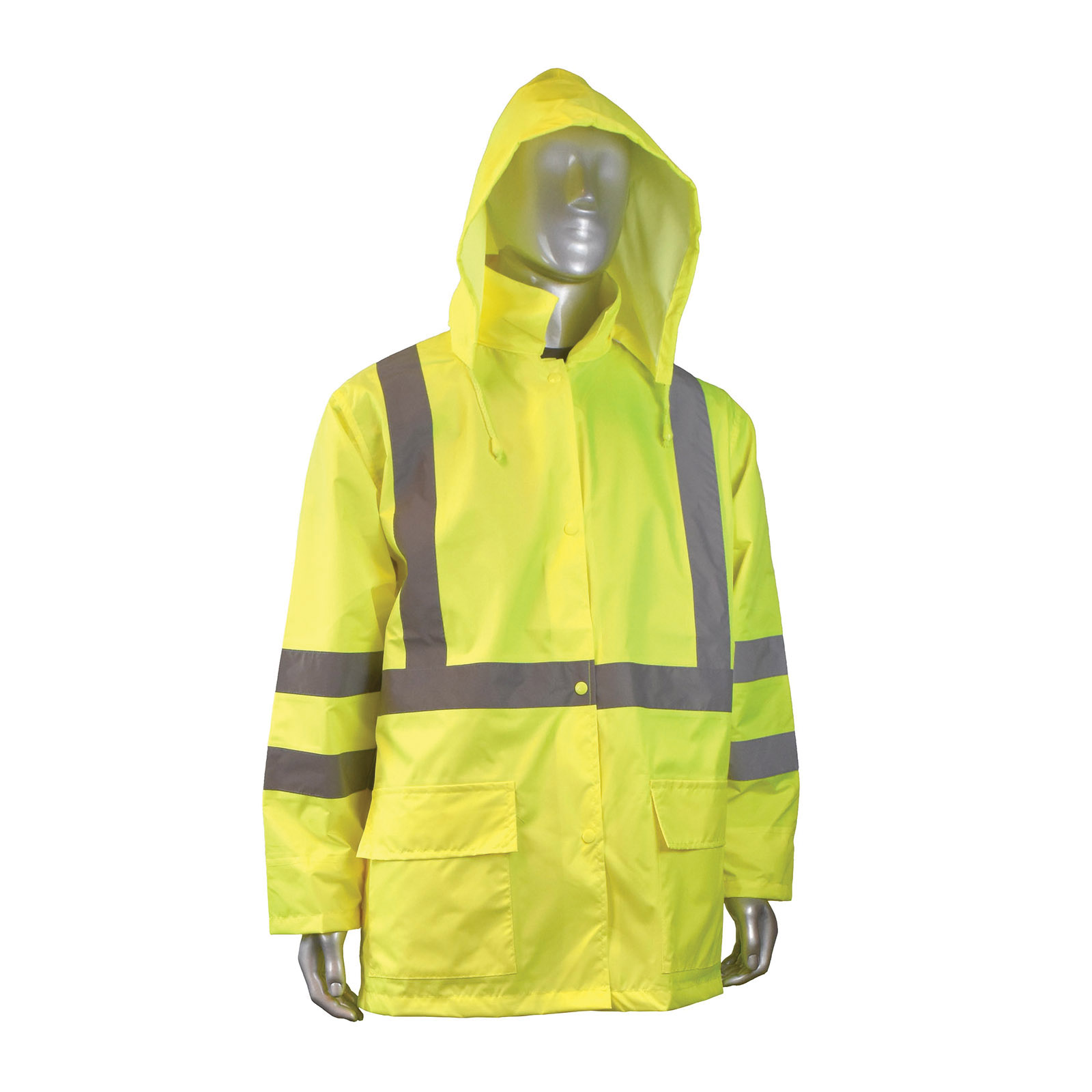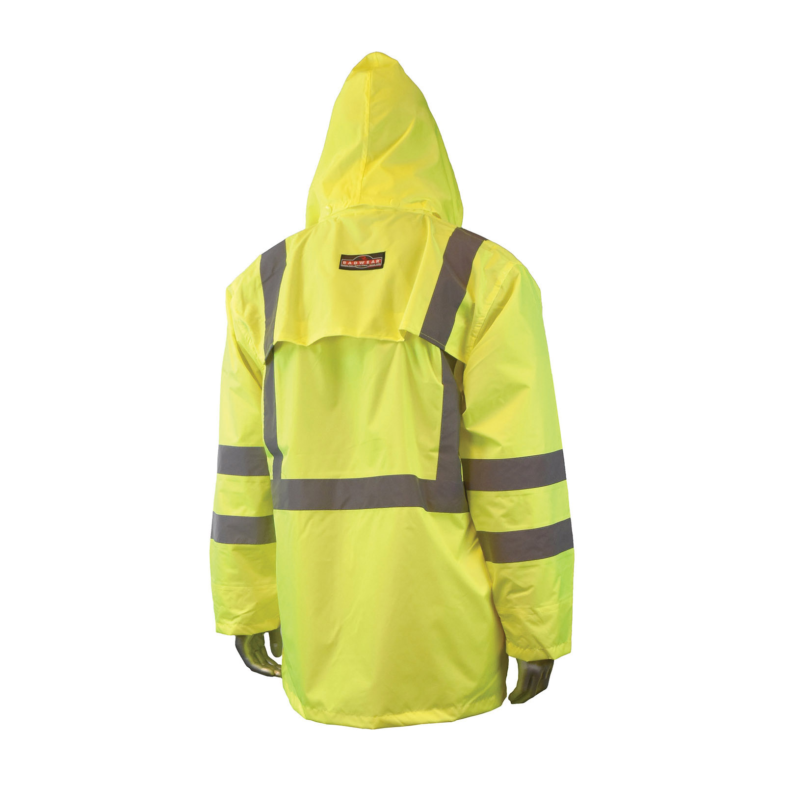 RADWEAR RW10-3S1Y-2X Lightweight Rain Jacket, 2XL, Green, 150 Denier Polyurethane Coated Oxford Polyester, ANSI/ISEA 107-2010 Class 3, Detachable Hood