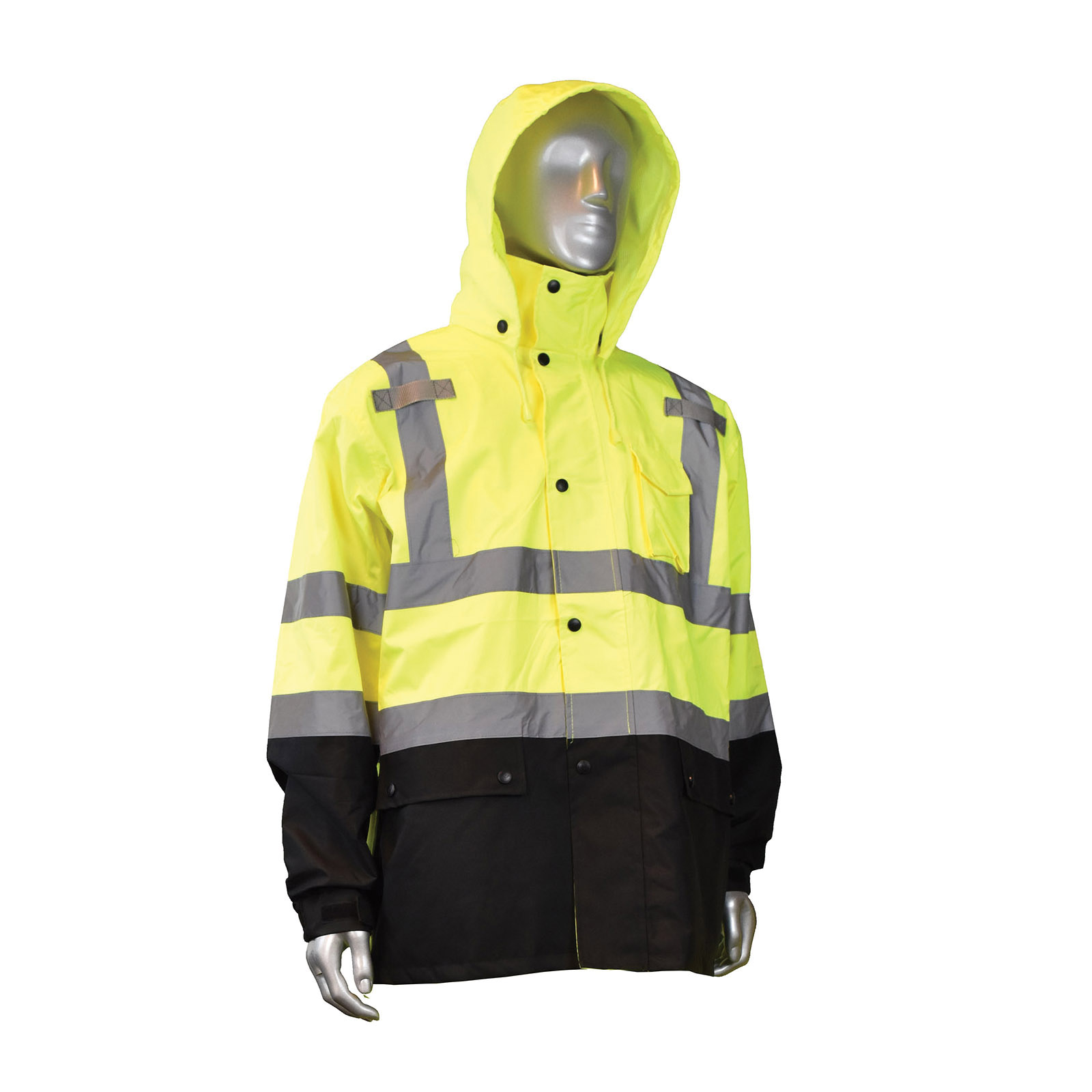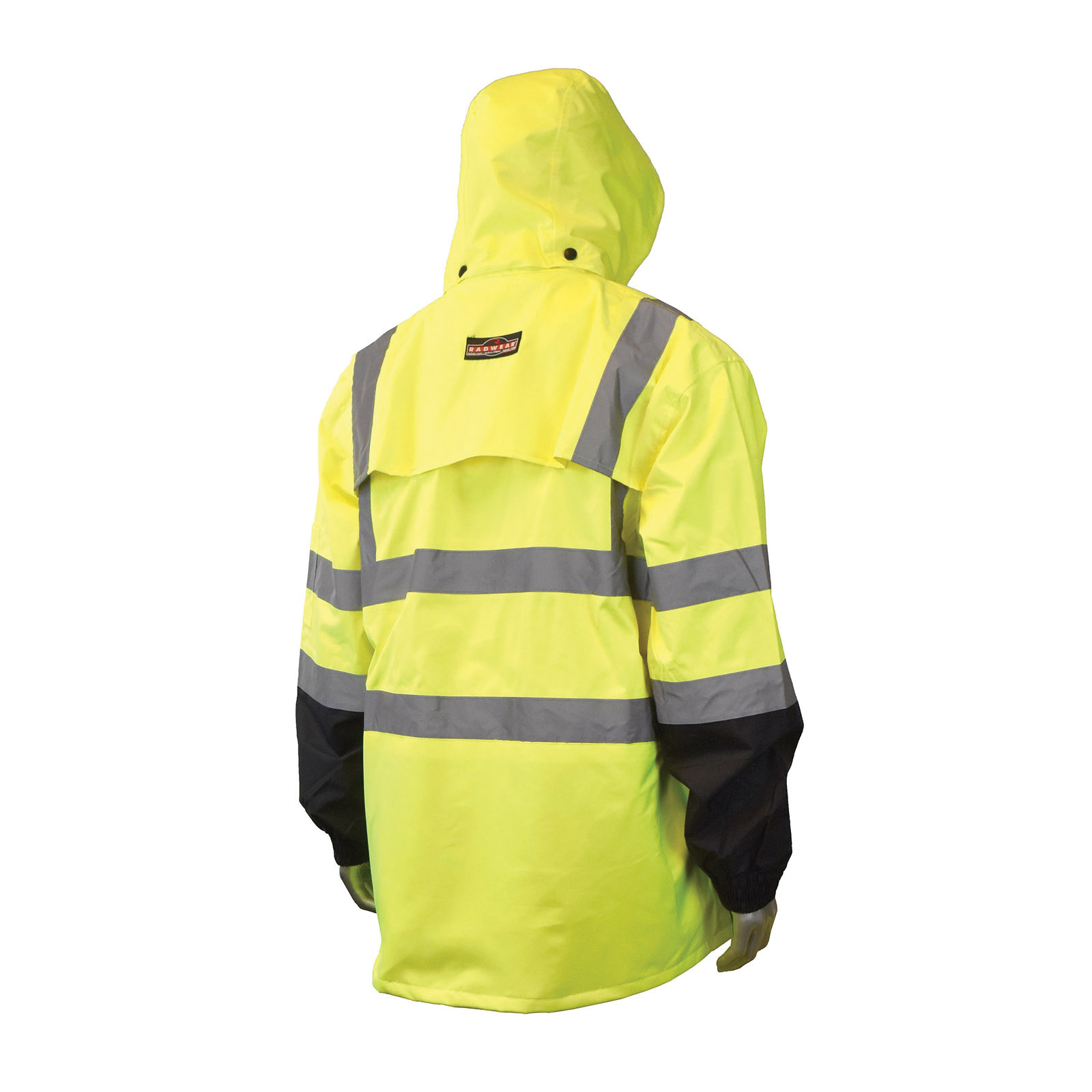 RADWEAR RW30-3Z1Y-2X General Purpose Rain Jacket, 2XL, Green, 300D Polyurethane Coated Oxford Polyester, ANSI/ISEA 107-2010 Class 3, Detachable Hood