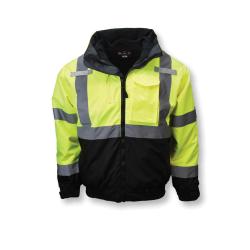 Radians SJ210B-3ZGS-XL 3-in-1 Deluxe Bomber Jacket, Black/Hi-Viz Green, Polyester, 46 to 48 in Chest, ANSI/ISEA 107-2010 Class 3