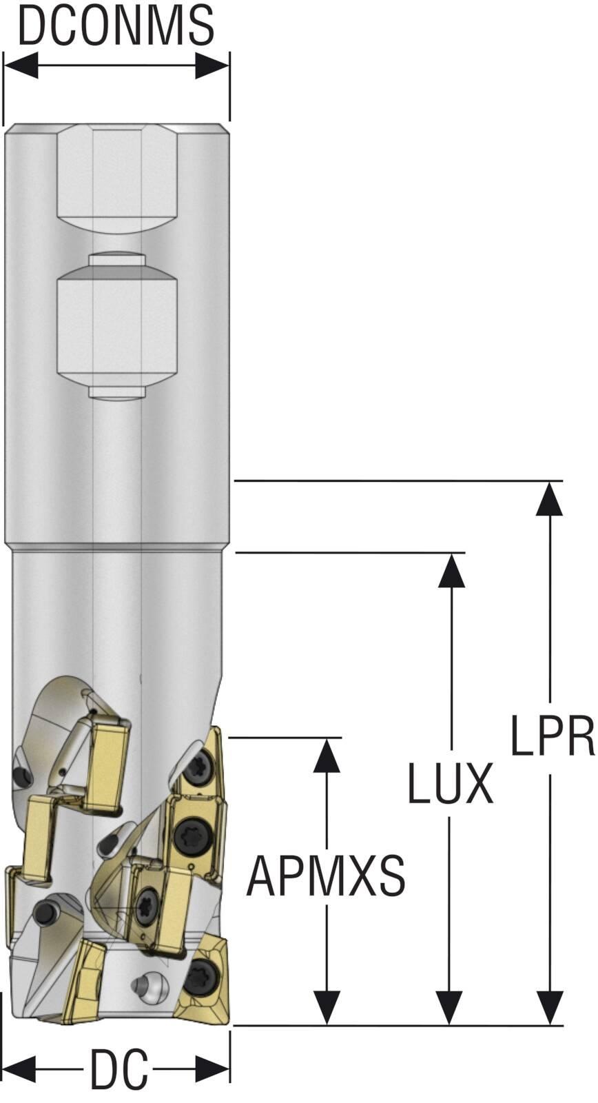 - ANSI Code:R217.42-1.50-3-2.79-LNXO.3ACutting Diameter:1.5 inCutting Direction:Right HandFinish:CrN CoatedLead Angle:90 degMaximum Depth of Cut:2.7559 inOverall Length:6.1849 inShank Diameter:1.5 inShank Length:2.7283 inShank Type:WeldonThrough Coolant (Yes/No):Yes