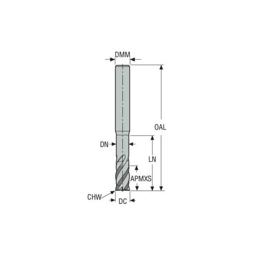 Seco JABRO HPM 03127384 JHP994/HPM Chamfer Tip High Performance Square End Mill, 10 mm Dia Cutter, 22 mm Length of Cut, 4 Flutes, 10 mm Dia Shank, 88 mm OAL, HXT