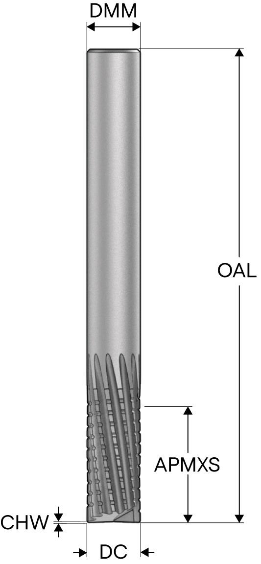 Seco JABRO 03135011 JC876 Chamfer Square End Mill, 10 mm Dia Cutter, 25 mm Length of Cut, 12 Flutes, 10 mm Dia Shank, 82 mm OAL, DURA