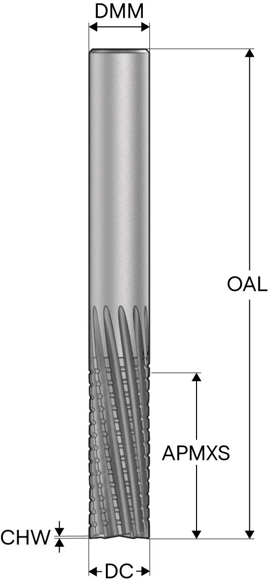 Seco JABRO 03135020 JC877 Burr Style Chamfer Square End Mill, 10 mm Dia Cutter, 30 mm Length of Cut, 12 Flutes, 10 mm Dia Shank, 82 mm OAL, DURA