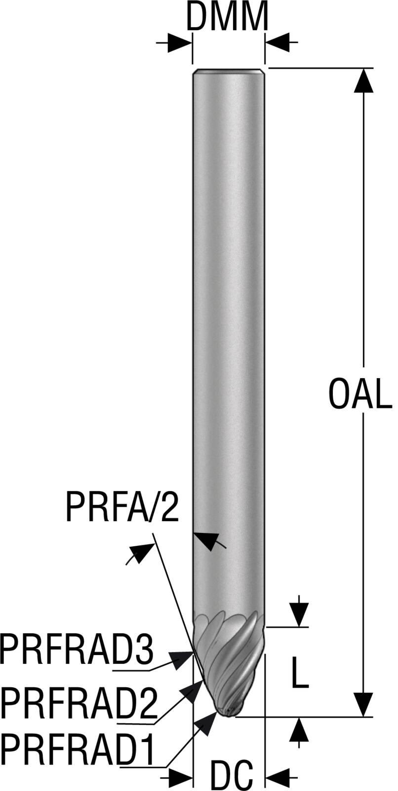 Seco 10106111 JH726 Tapered End Mill, 10 mm Dia Cutter, 10.7 mm Length of Cut, (6) Flutes, 10 mm Dia Shank, 89 mm OAL, AlCrN