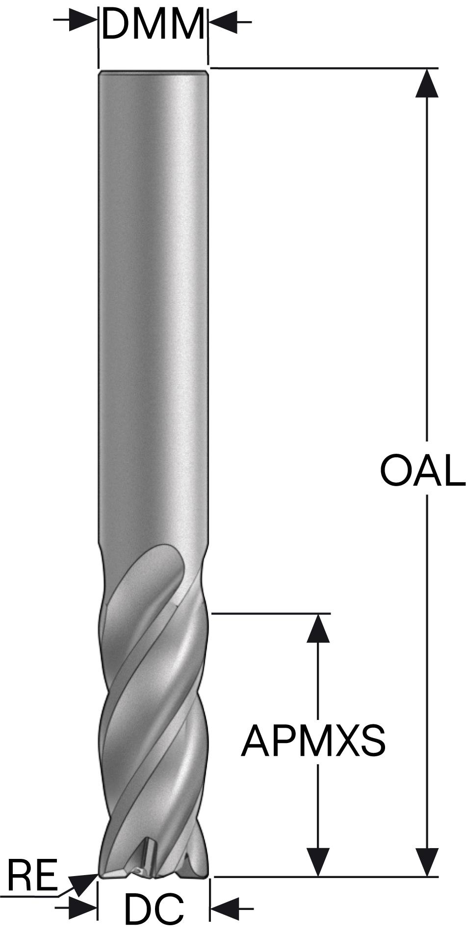 Seco 10302803 Corner Radius End Mill, 0.5 in Dia Cutter, 0.02 in Corner Radius, 0.02 in Length of Cut, (4) Flutes, 0.5 in Dia Shank, 2.5 in OAL, SIRON-A Coated