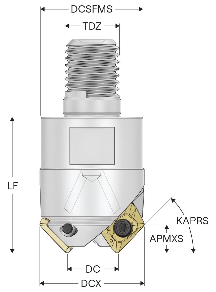 Seco 02669572 Turbo Indexable Chamfer End Mill, XO.. 1204.. Insert, 1.053 in Dia Cutting
