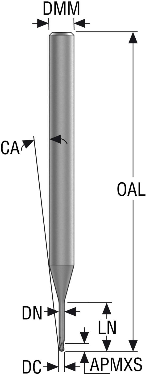 Seco 10108780 SMB614 Single End Mill, 0.6 mm Dia Cutter, 0.6 mm Length of Cut, (2) Flutes, 4 mm Dia Shank, 50 mm OAL, Diamond Coated