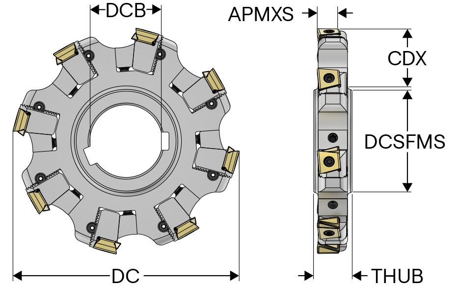 Seco 02827738 Disc Milling Cutter, ANSI Code: 335.25-06.00-1620R, 152.4 mm Dia, XNHQ Insert