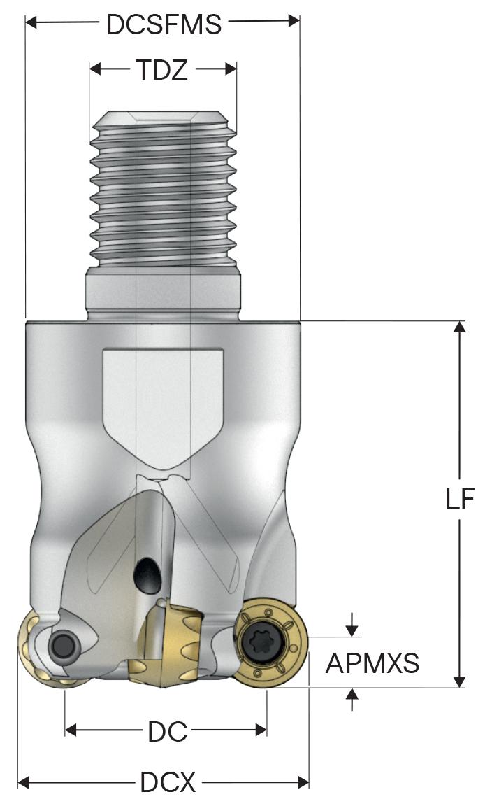Seco 02949637 R217.29 Indexable Copy End Mill, M16 Modular Connection Thread