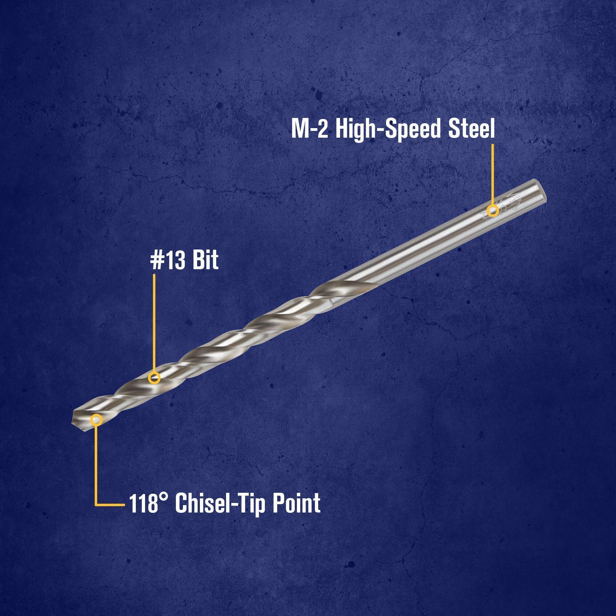 Irwin 81113 General Purpose Jobber Length Drill Bit, #13 Drill - Wire, 0.185 in Drill - Decimal Inch, 118 deg Point, M2 HSS, Bright