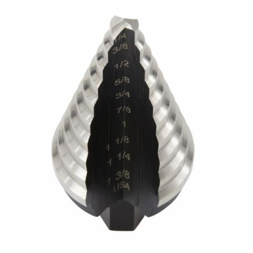 Irwin Unibit 10235 Step Drill Bit, 1/4 in Dia Min Hole, 1-3/8 in Dia Max Hole, 10 Steps, HSS, 10 Hole Sizes, 7/16 in Shank