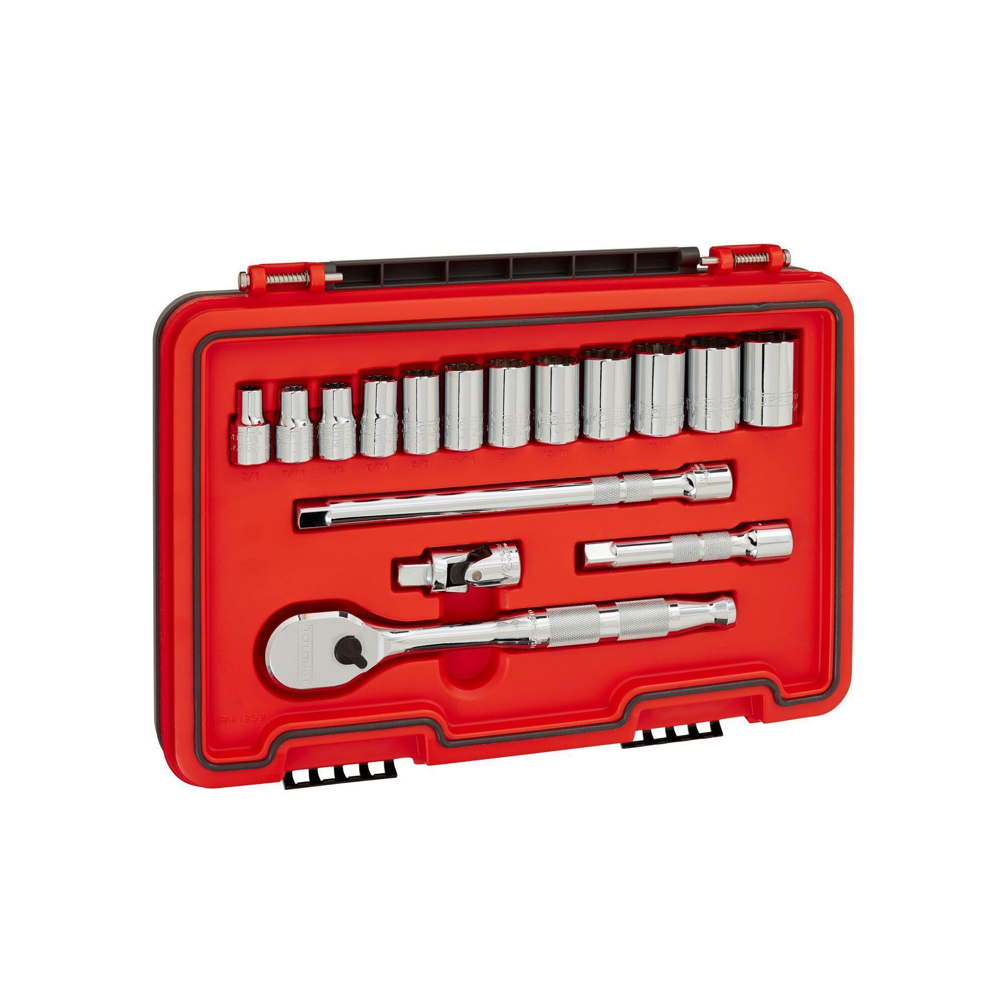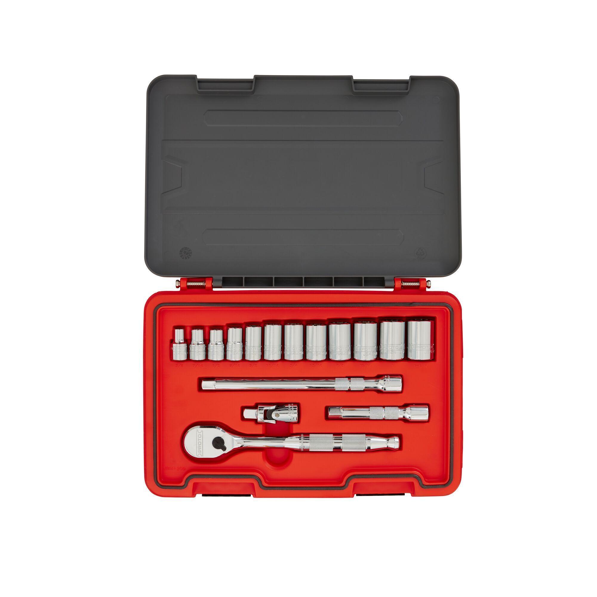 - Drive Size:1/2 inDrivers Included:YesFinish:Polished ChromeImpact Rated:NoMeasurement System:ImperialNumber of Pieces:16Number of Points:12Tether Capable:No