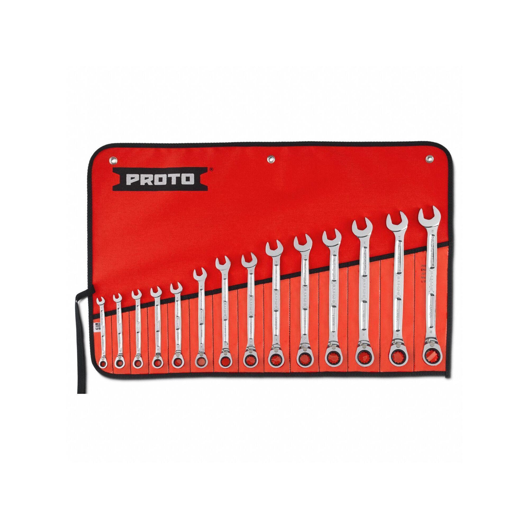 Proto JSCVM-14SB Combination Wrench Set, 14 Pieces, 6 to 19 mm, Polished Chrome
