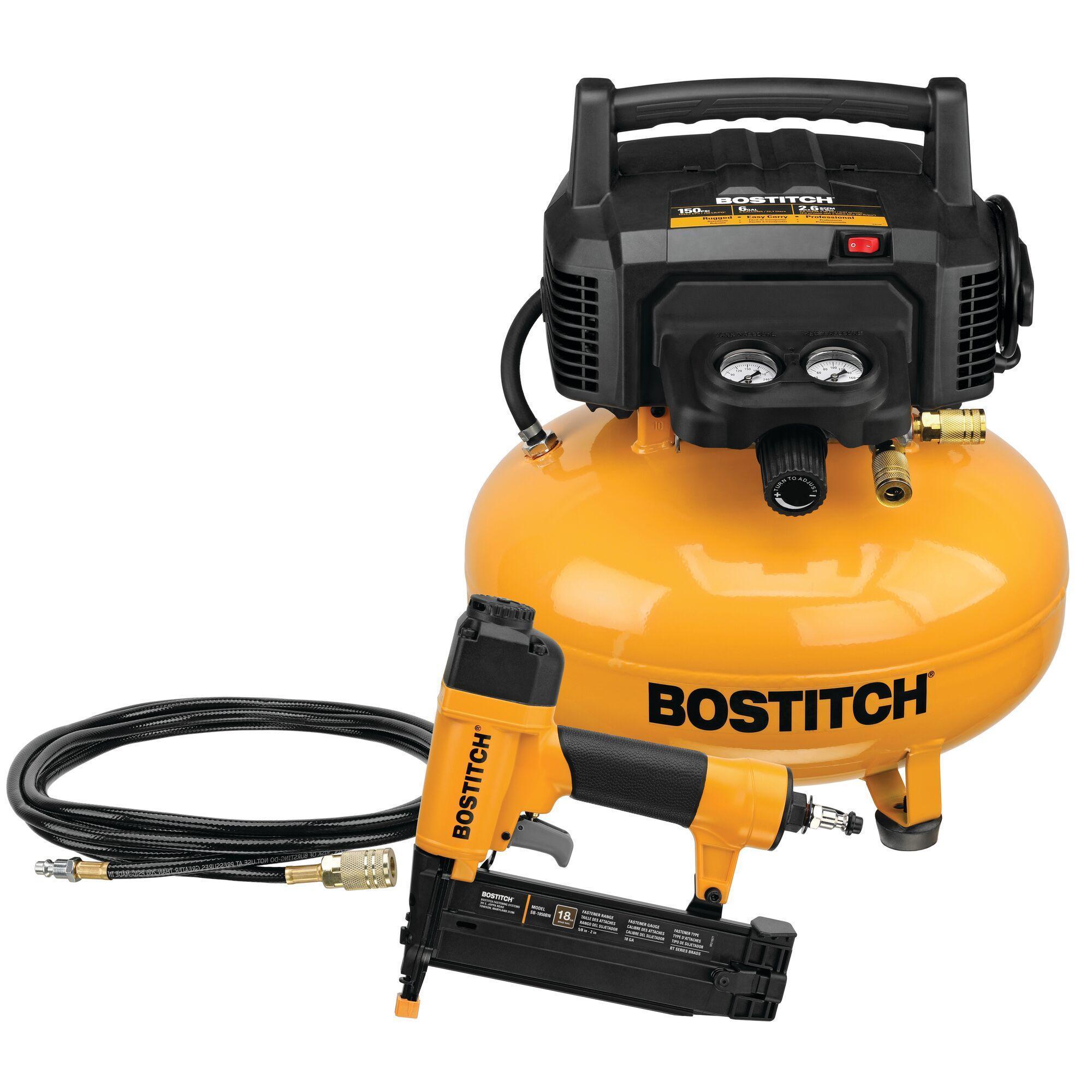 Bostitch BTFP1KIT 1-Piece Brad Nailer and Compressor Kit, 5/8 to 2 in Fastener, 100 Nails Magazine, 70 to 100 ps
