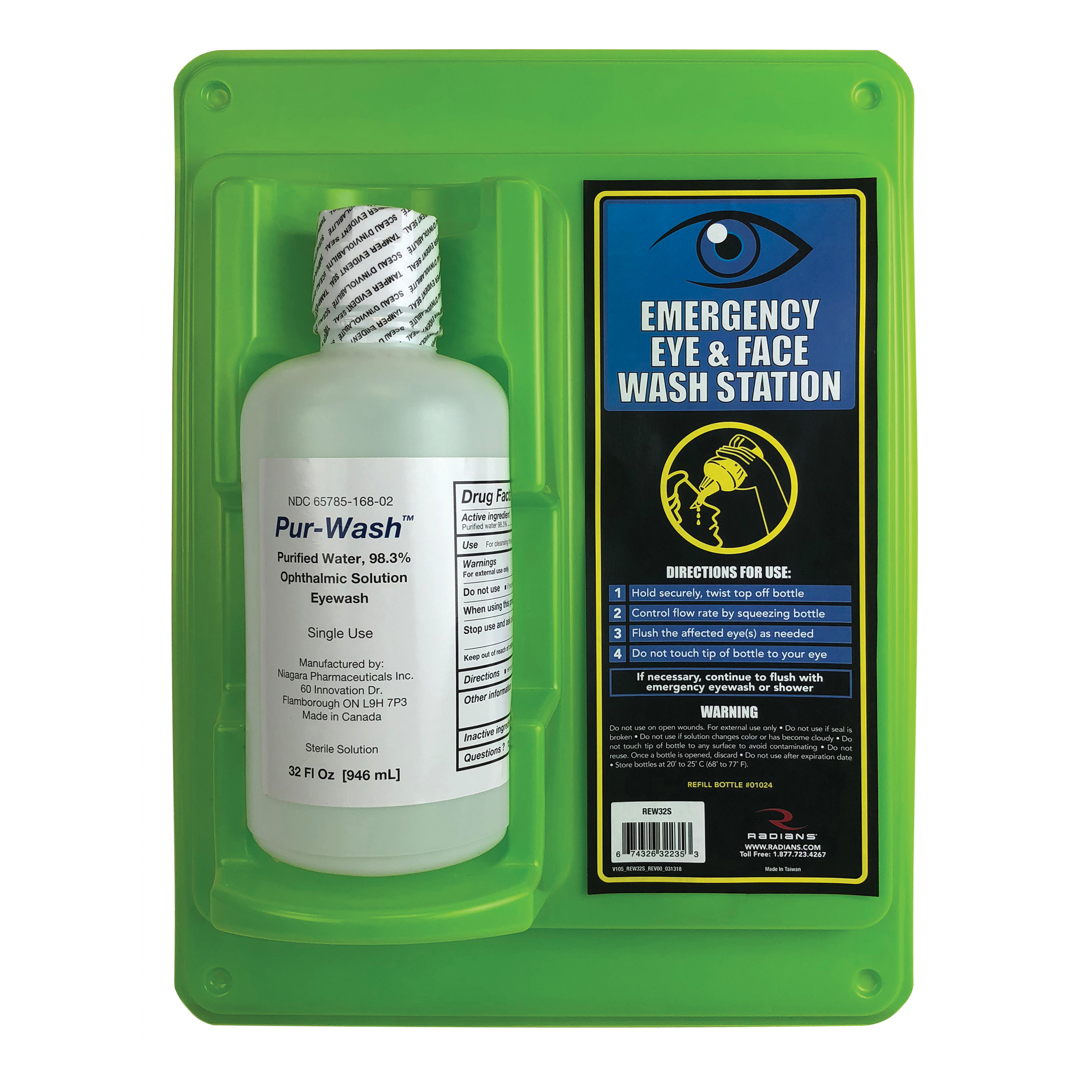 Radians REW32S Single Personal Eyewash Station, 32 oz Bottle, Wall Mount