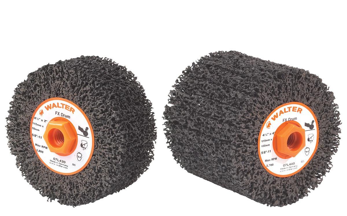 Walter Surface Technologies FX 07L420 Cleaning and Finishing Drum, 4-1/4 in Dia Wheel, 2 in W Face, Coarse Grade, Aluminum Oxide Abrasive